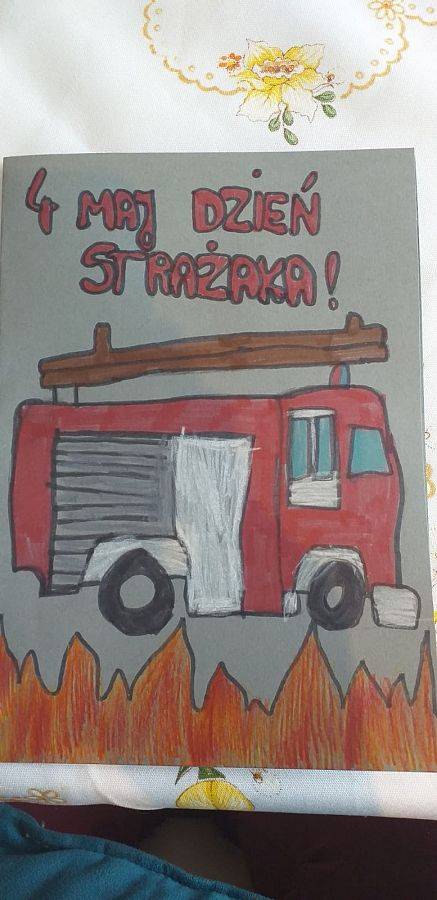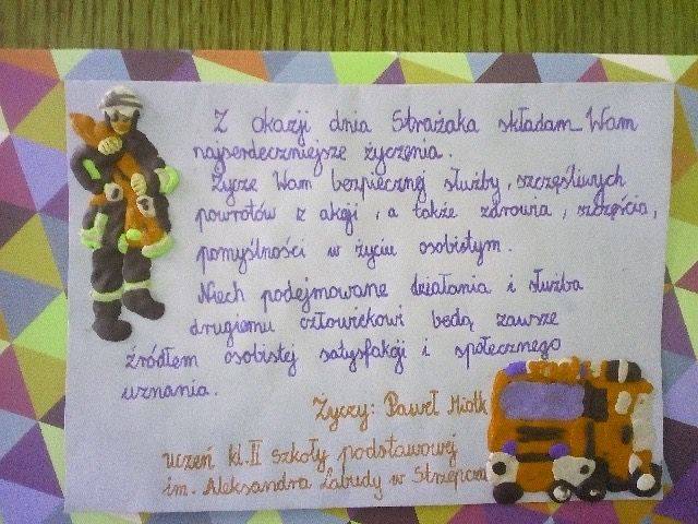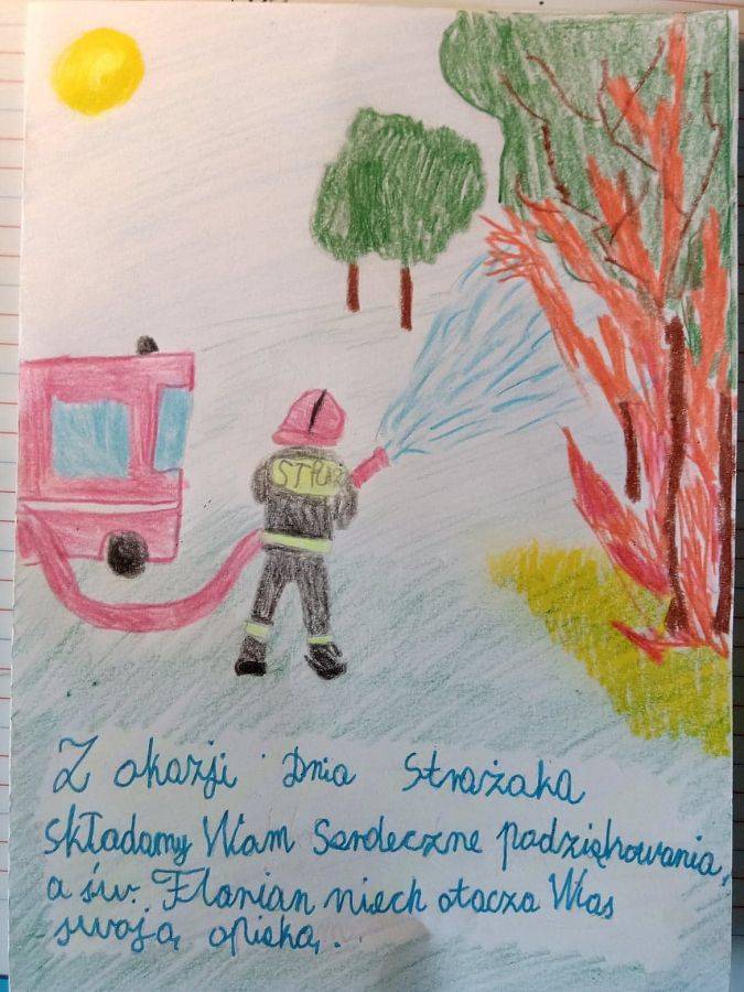 Dowodem wdzięczności i uznania ze strony uczniów za misję pełnioną przez Strażaków są wykonane przez nich laurki.