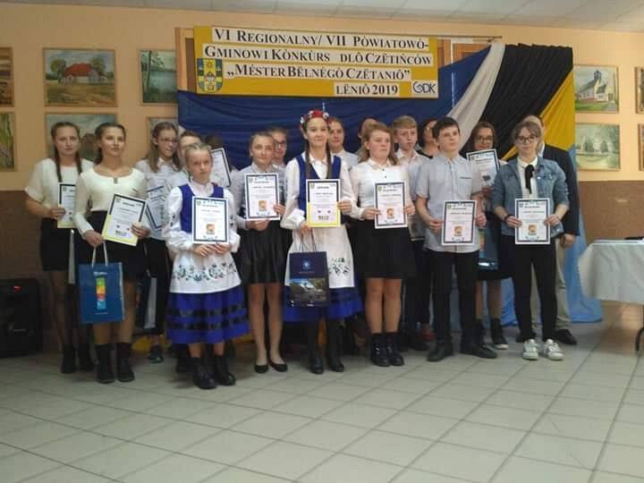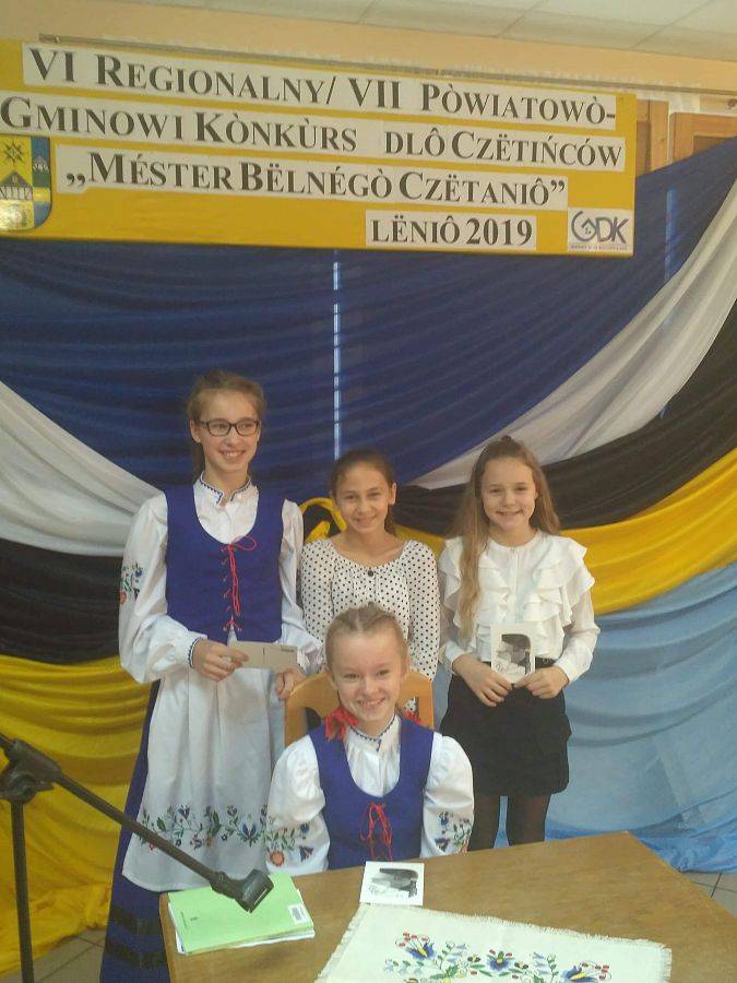 Dnia 19.11.2019r. odbył się Gminny Konkurs „Mèster Bëlnégò Czëtaniô”. Celem konkursu była popularyzacja literatury i kultury kaszubskiej, rozbudzenie pasji czytania w języku kaszubskim, podnoszenie rangi języka kaszubskiego oraz doskonalenie kultury żywego słowa. Zadania konkursowe polegały na doskonaleniu umiejętności posługiwania się językiem kaszubskim i doskonaleniu sztuki interpretacji tekstu. Naszą szkołę w tym konkursie reprezentowały: Julia Ellwart, Agata Skrzypkowska, Patrycja Henig i Paulina Labuda.