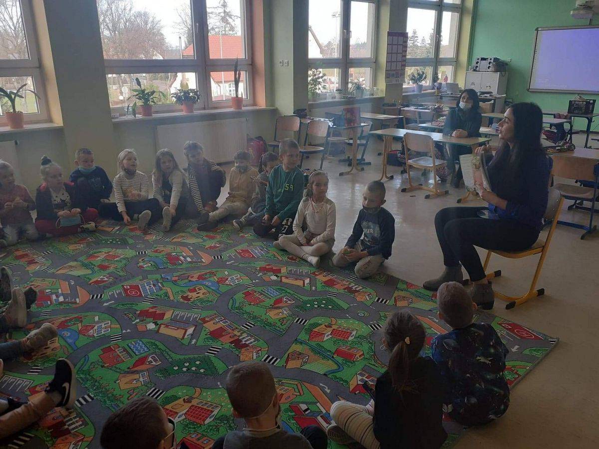 W dniach 26.02 – 12.03.2021 r. została przeprowadzona akcja czytelnicza pt. „Przerwa na czytanie” dla najmłodszych uczniów naszej szkoły: czterolatków, pięciolatków, sześciolatków oraz uczniów klas I-III. Podczas długiej przerwy została zorganizowana tzw. strefa czytania w sali, gdzie panie: psycholog i pedagog czytały dzieciom najpiękniejsze wiersze Jana Brzechwy, Juliana Tuwima oraz Wandy Chotomskiej.