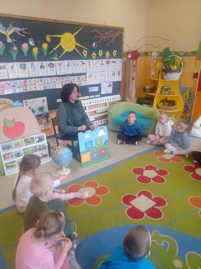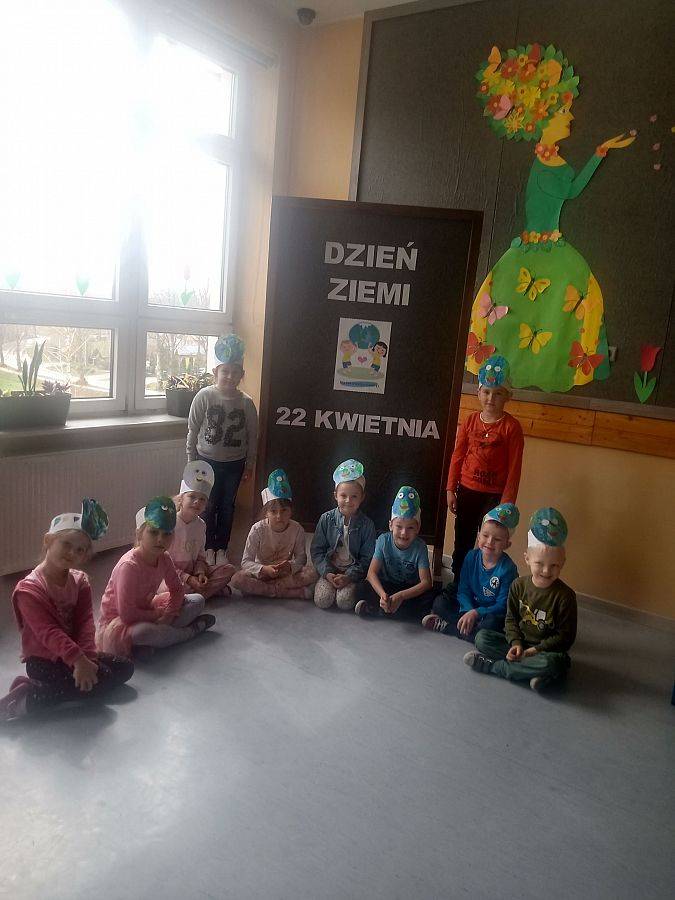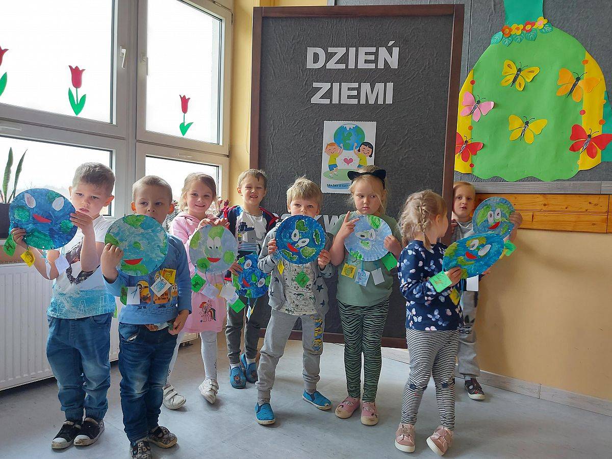 Dnia 22 kwietnia obchodzony jest na całym świecie Dzień Ziemi. W tym dniu powinniśmy wszyscy, choć przez chwilę pomyśleć o naszej planecie i otaczającej nas przyrodzie. Ze względu na trwającą pandemię oraz zdalne nauczanie w klasach I-VIII, dzień ten w naszej szkole obchodzony był tylko w przedszkolu. Dzieci z grupy czterolatków, pięciolatków oraz zerówki dowiedziały się, jak dbać o czyste środowisko oraz w jaki sposób segregować śmieci. Sześciolatki wykonały czapeczki przedstawiające naszą planetę. Nie zabrakło też prac plastycznych, wierszyków i piosenek o Ziemi.
