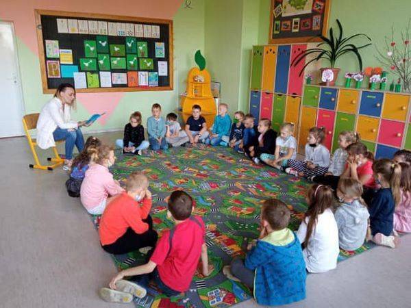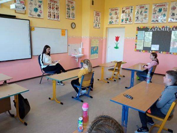 – Spotkanie z baśnią, podczas którego pani dyrektor Agnieszka Pipka – Szczypior czytała uczniom kl. I-III baśń H.Ch. Andersena pt. „Słowik”,
