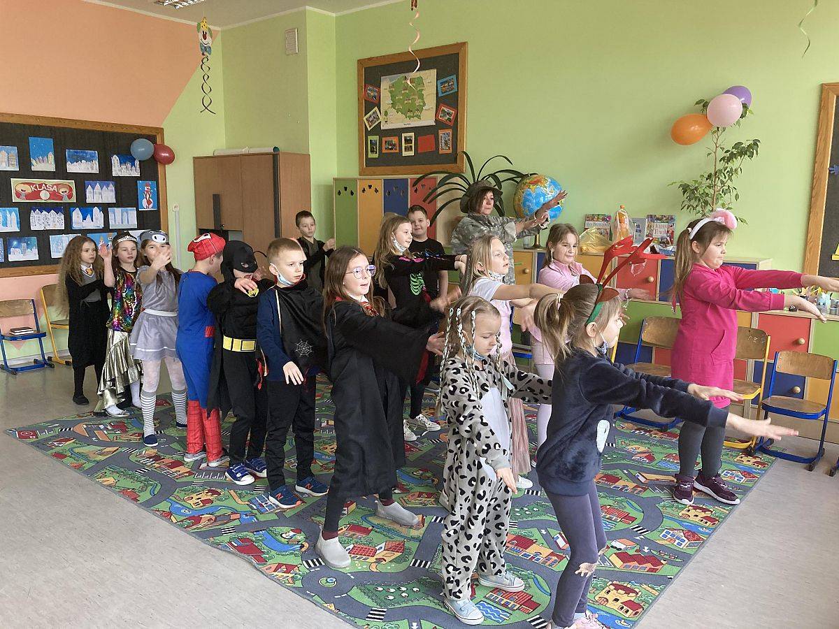 W ostatnim tygodniu przed rozpoczęciem ferii zimowych uczniowie klas I – III oraz grup przedszkolnych bawili się na klasowych balach karnawałowych.