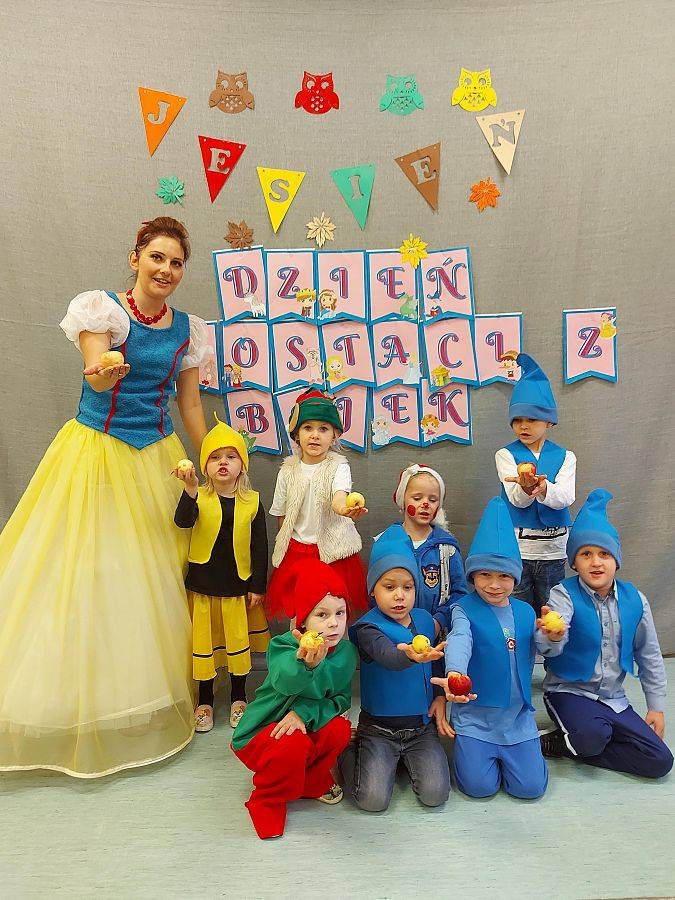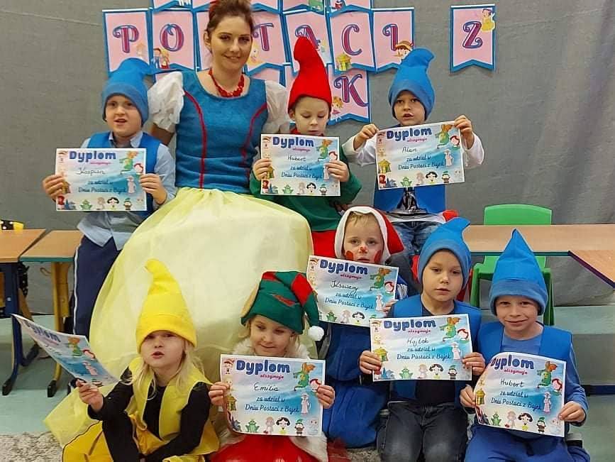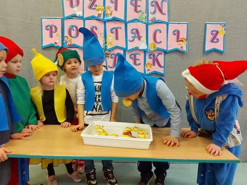 5 listopada w naszym Przedszkolu dzieci obchodziły „Dzień Postaci z Bajek”. Baśnie i bajki są dla wszystkich źródłem bogatych przeżyć , wrażeń i sposobem wzbogacania wyobraźni. Bajka towarzyszy nam już od najmłodszych lat. W tym dniu Przedszkolaki utożsamiły się z bohaterami „Królewny Śnieżki” wysłuchały bajki, rozpoznawały imiona krasnoludków. Wyciągały z wody jabłko, rysowały ulubionego krasnoludka oraz bawiły się własnoręcznie przygotowanym śniegiem. Ten dzień sprawił przedszkolakom wiele radości, a jednocześnie przypomniał jak ważne są bajki, i że warto po nie sięgać.