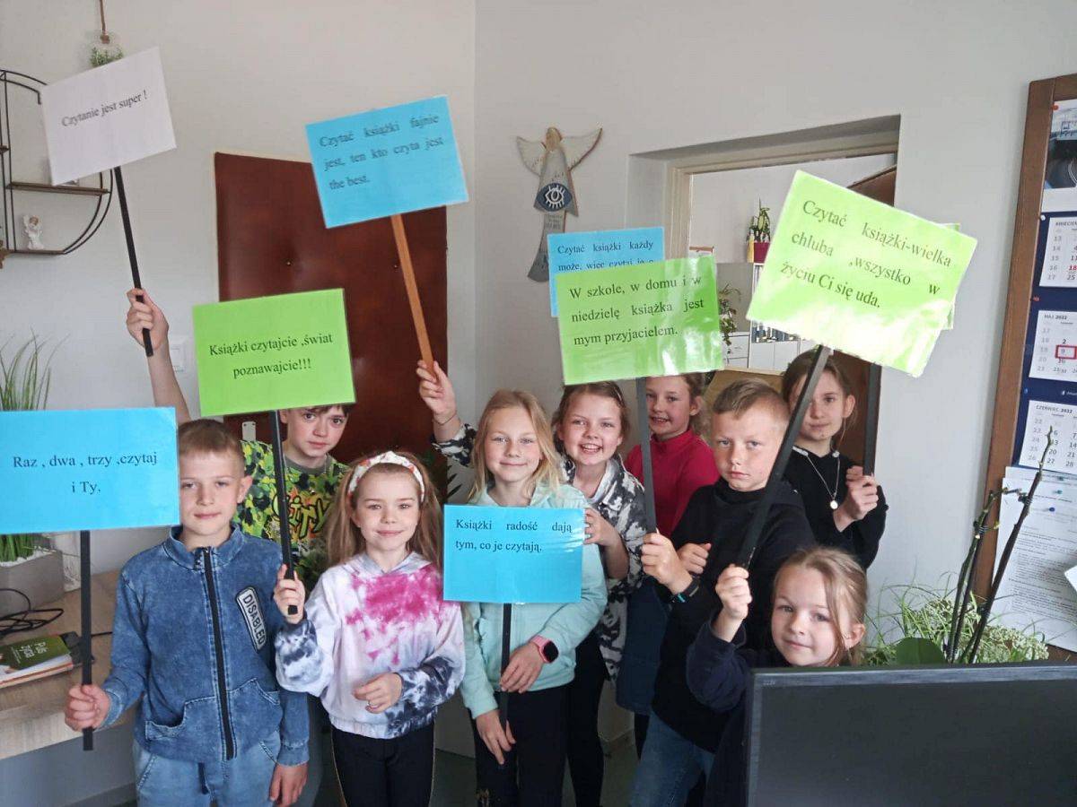 Z tej okazji w naszej szkole 13 maja 2022 roku została przeprowadzona akcja promująca czytelnictwo pod hasłem: „Czytać książki każdy może, więc czytaj je o każdej porze”.