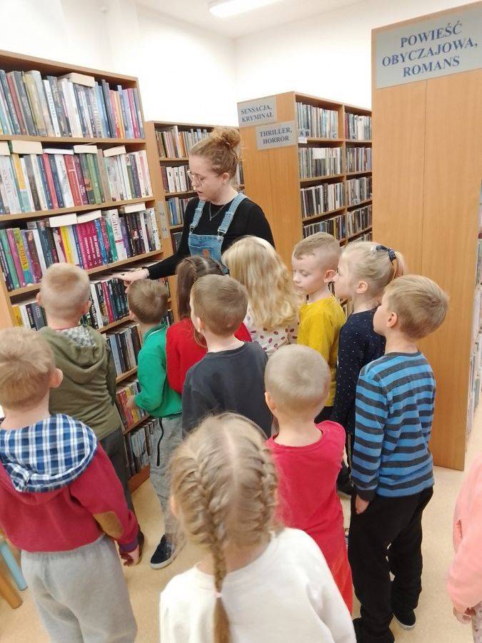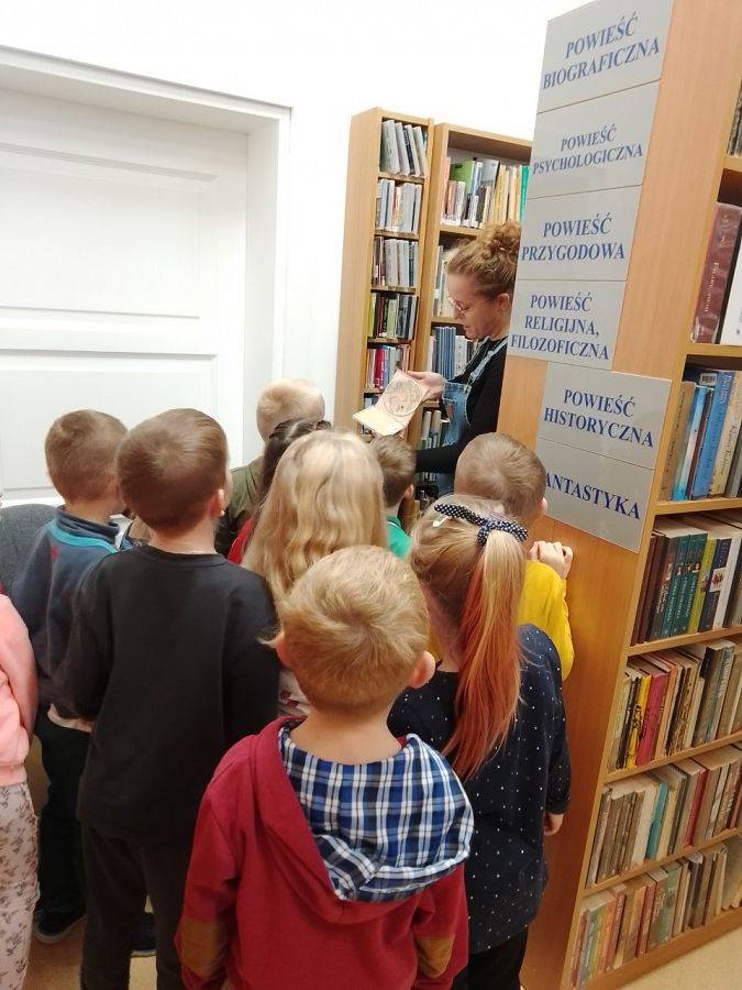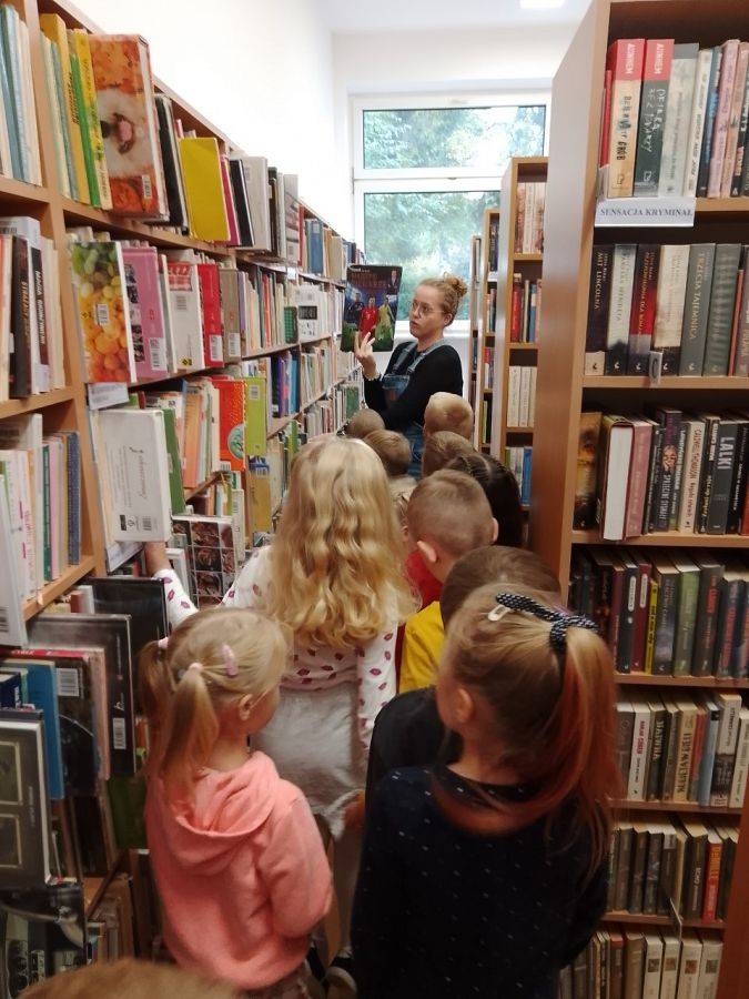 Dnia 02.10.2022r dzieci z klasy „0” odwiedziły Bibliotekę Publiczną, która mieści się w naszej szkole. Spotkanie z książką poprowadziły p. Małgosia i Justyna. Panie bibliotekarki zapoznały dzieci z księgozbiorem biblioteki, do którego należą książki dla dzieci i młodzieży, literatura piękna polska i obca dla dorosłych, słowniki oraz książki popularnonaukowe.
