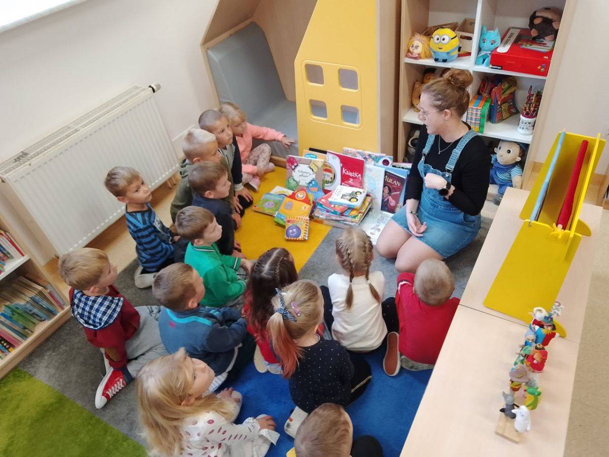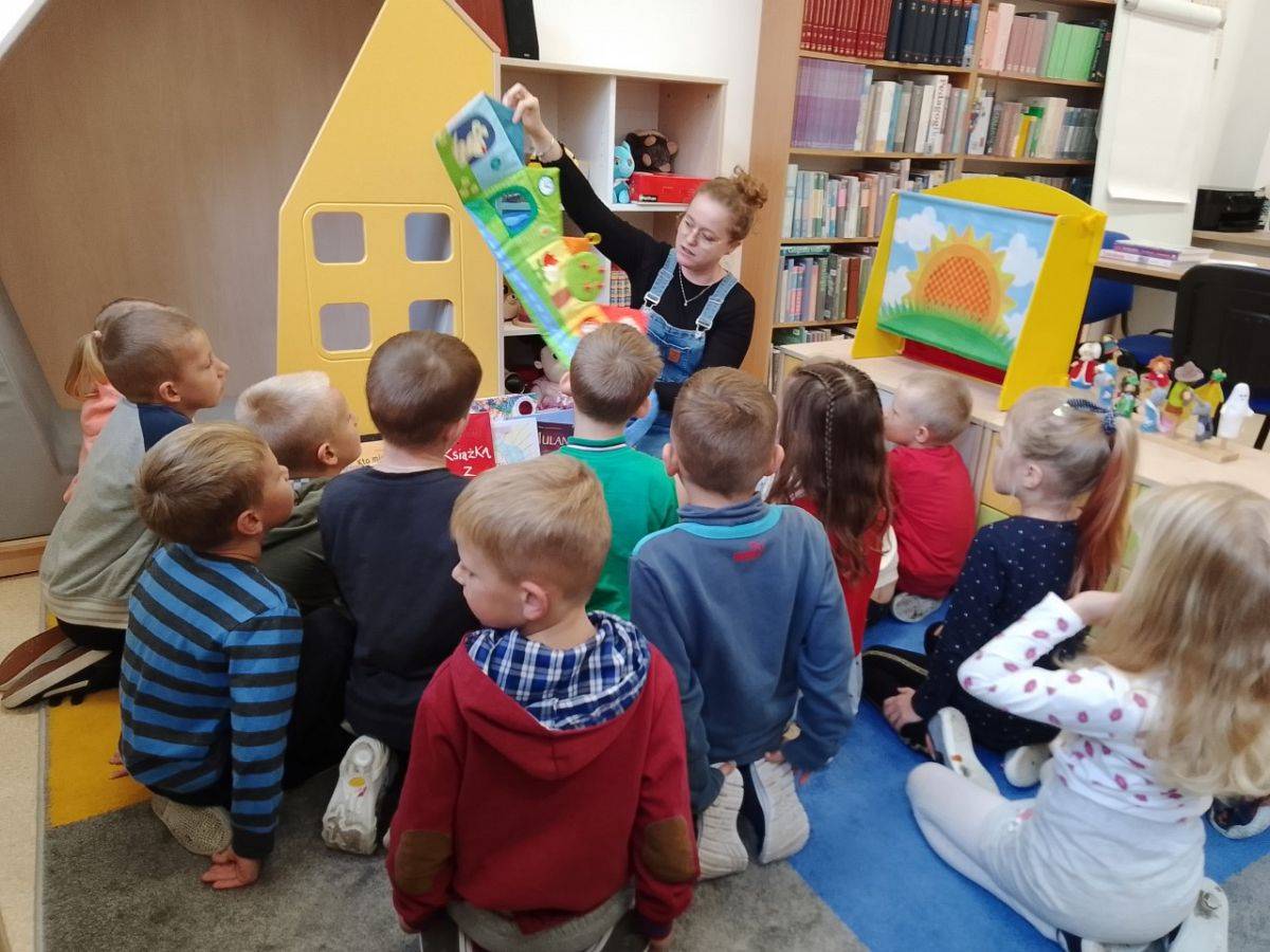Dzieci poznały i utrwaliły zasady zachowania się w bibliotece, dowiedziały się dlaczego warto czytać oraz czego nie lubią książki. Po tak solidnej dawce wiedzy uczniowie skorzystali z kącika czytelnika, gdzie bawili się klockami, grali w gry i oglądali książeczki.