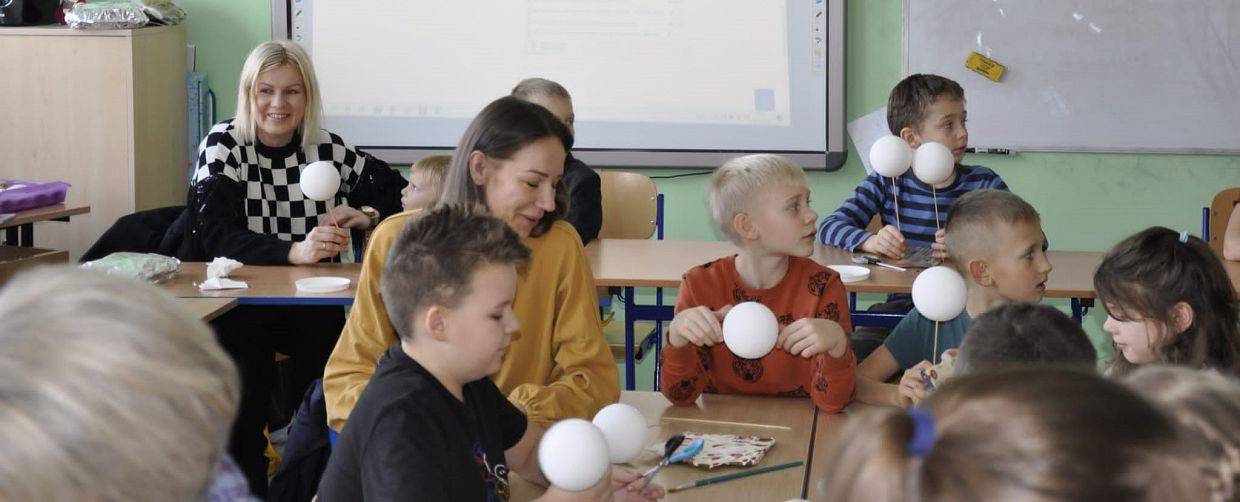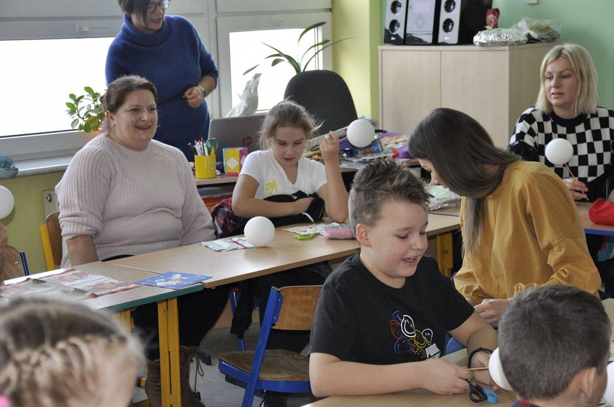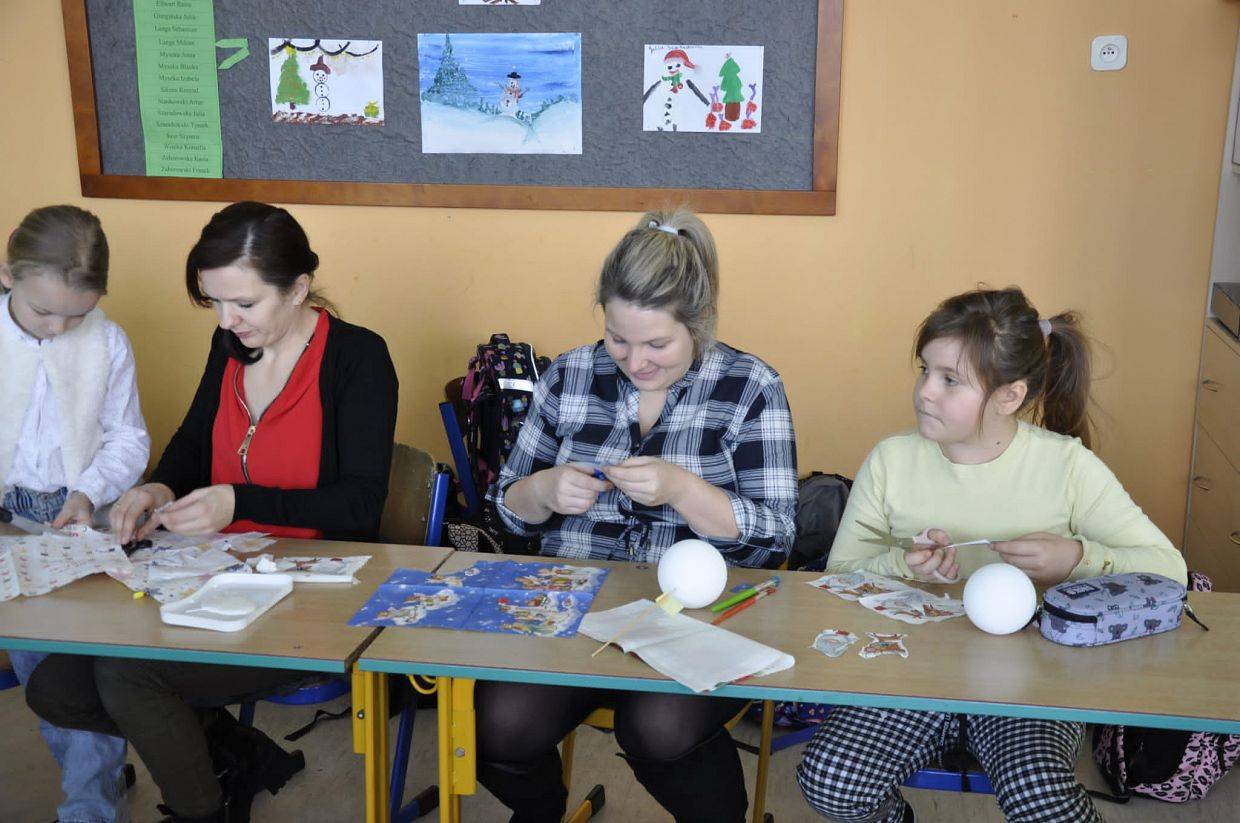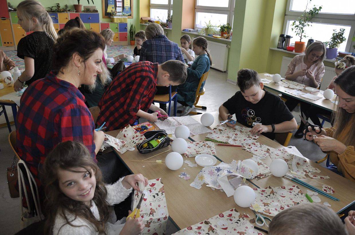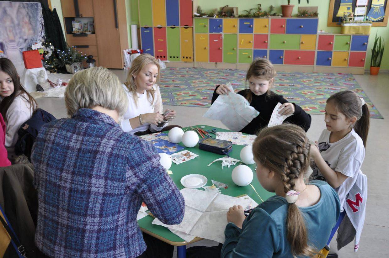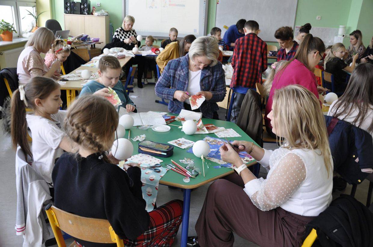 Dnia 9.12.2022r. zajęcia w klasie III poświęcone były przygotowywaniu ozdób świątecznych. W zajęciach tych, oprócz dzieci, uczestniczyły także ich mamy. Każdy z uczestników warsztatów przygotowywał techniką decoupage bombkę. Z nową techniką zapoznała wszystkich pani Sylwia Dawidowska. Po warsztatach dzieci poczęstowały swoje mamy piernikami, które samodzielnie upiekły na lekcjach j. kaszubskiego. Mamy również przygotowały dla dzieci mnóstwo łakoci, tak więc po wytężonej pracy każdy mógł skosztować czegoś słodkiego. Następnie uczniowie zaprezentowali swoim mamom kilka piosenek z własnym akompaniamentem. Na zakończenie zajęć każdy mógł wykonać sobie pamiątkowe zdjęcie w bożonarodzeniowej scenerii.