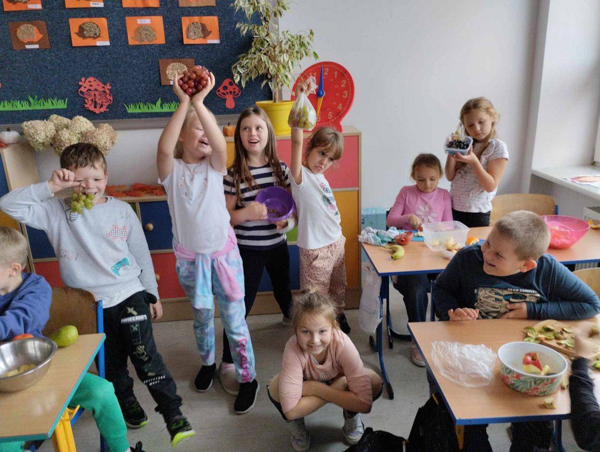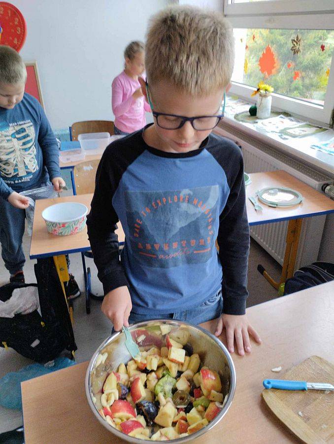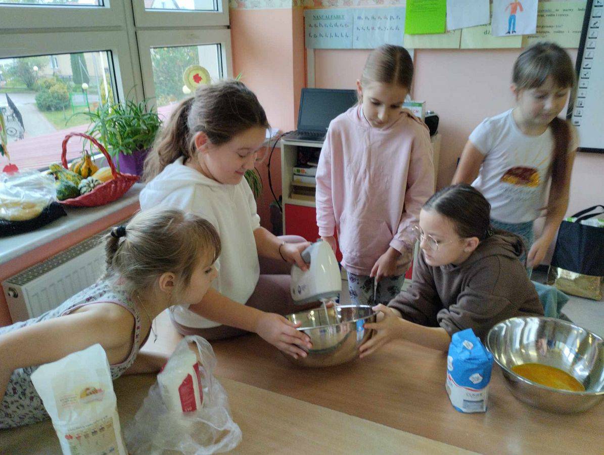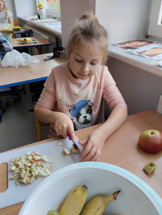 Klasa I skupiła się na walorach jesiennego ogrodu i przygotowała piękne słoneczniki. Natomiast klasy 2 i 3 miały zajęcia kulinarne. Klasa 2 robiła sałatkę owocową, a klasa 3 piekła gofry.