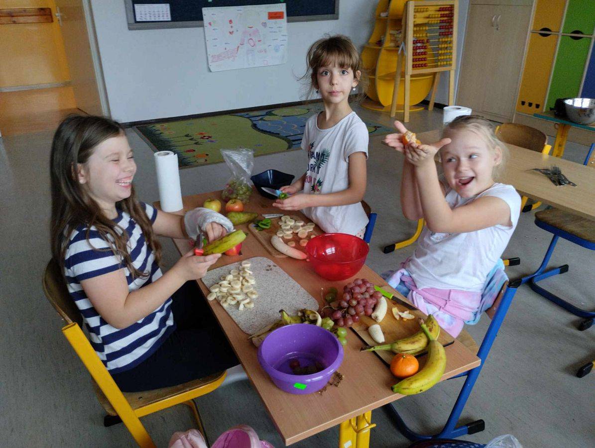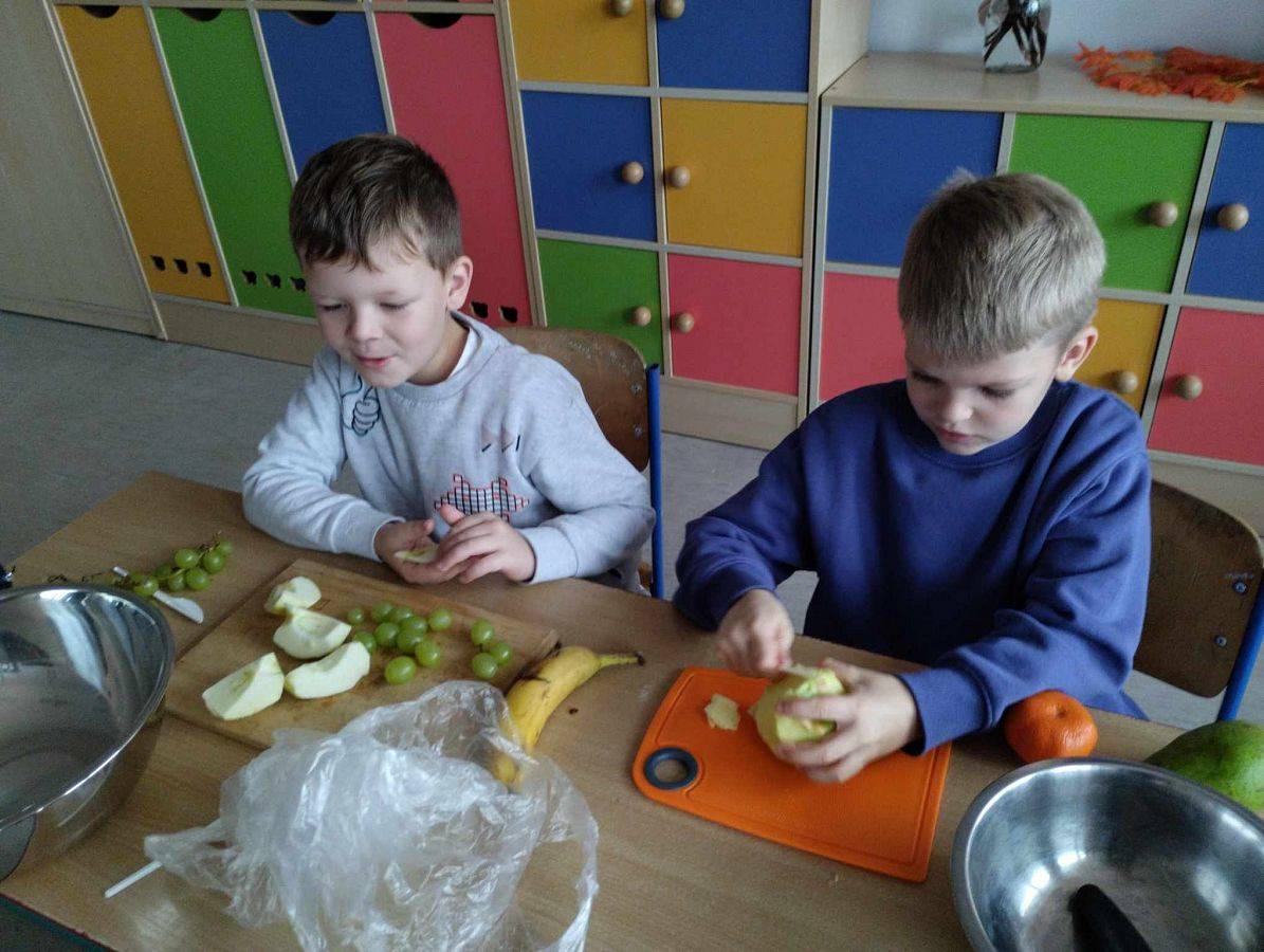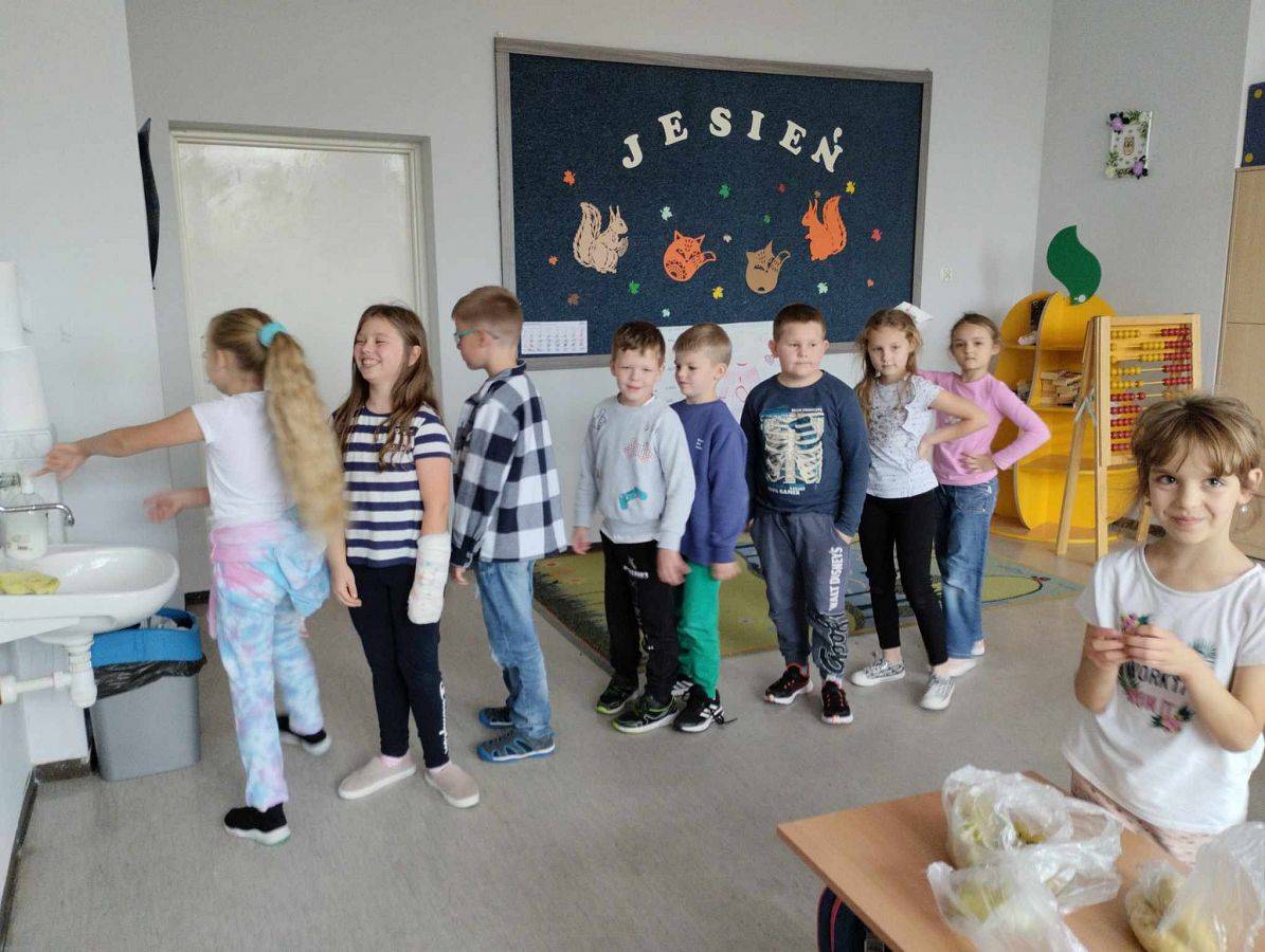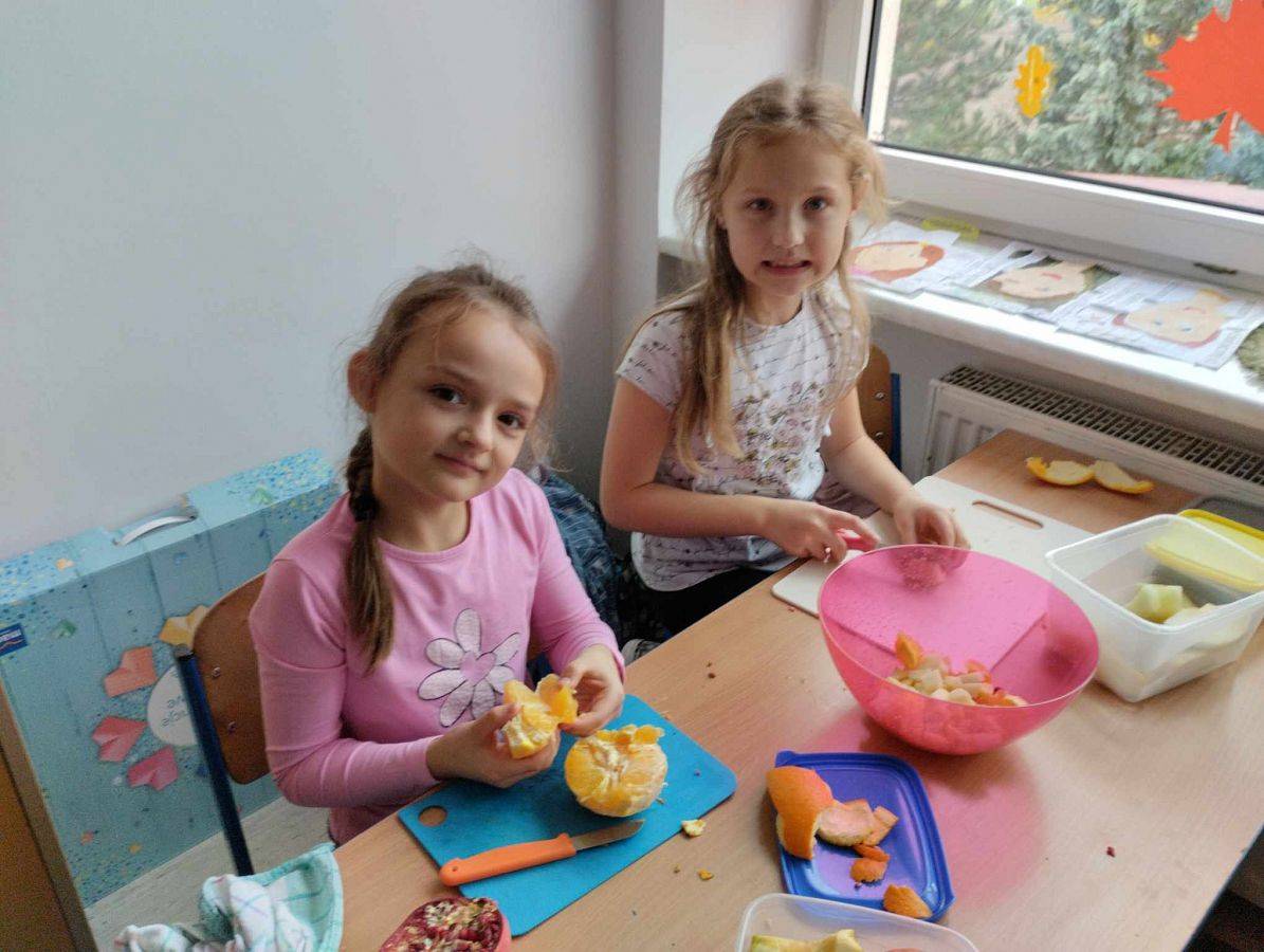 Klasa I skupiła się na walorach jesiennego ogrodu i przygotowała piękne słoneczniki. Natomiast klasy 2 i 3 miały zajęcia kulinarne. Klasa 2 robiła sałatkę owocową, a klasa 3 piekła gofry.