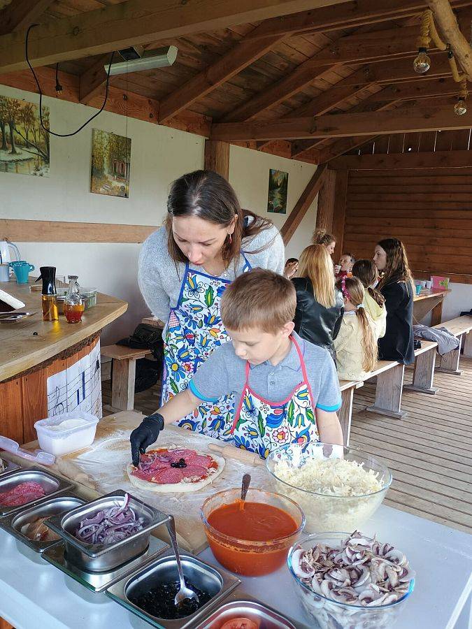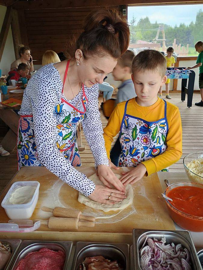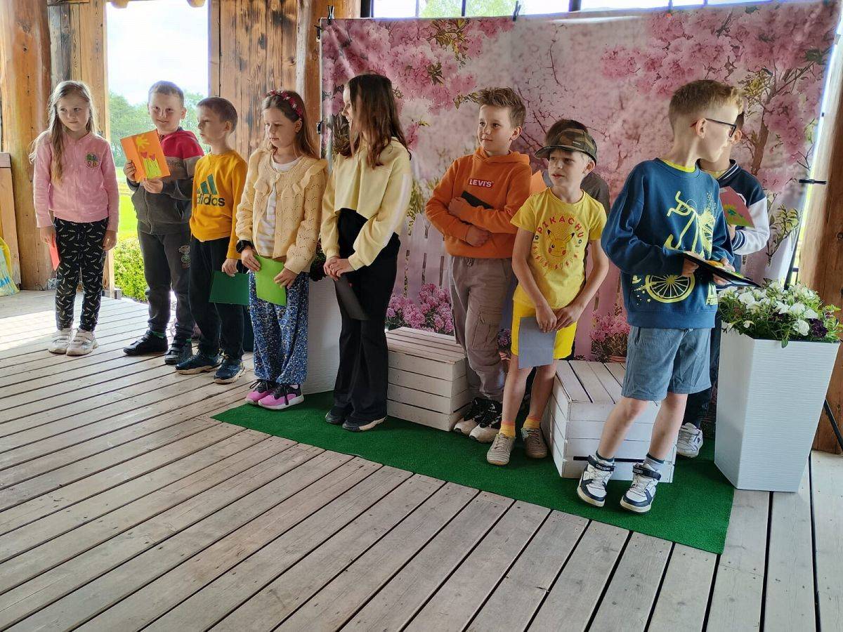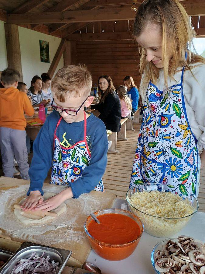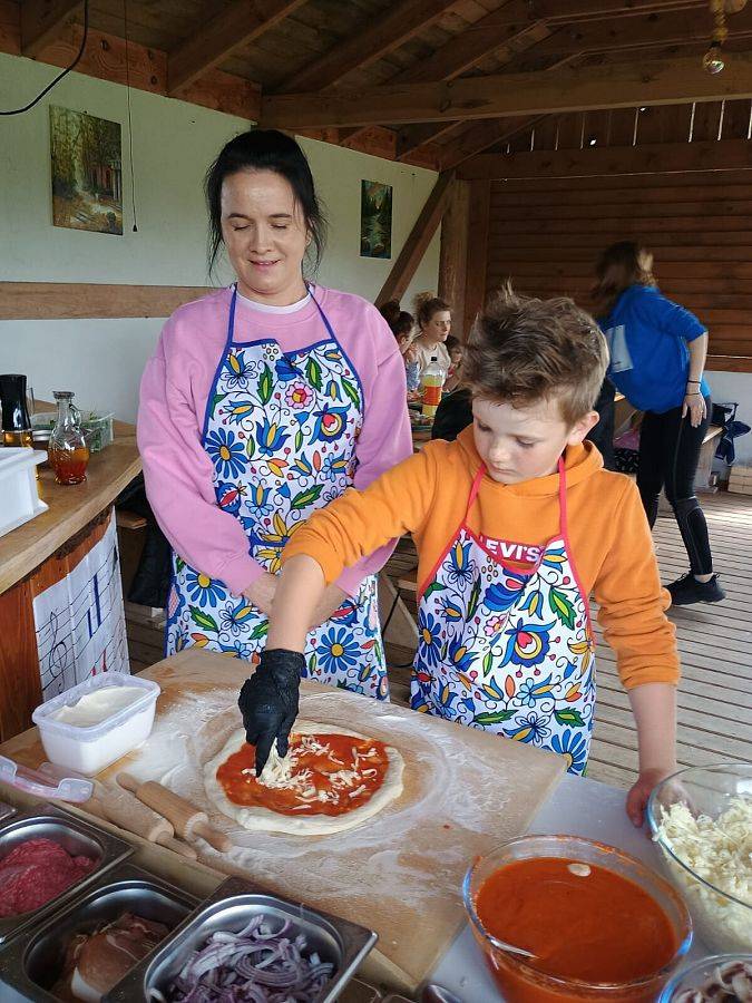 Tegoroczne Święto Matki uczniowie klasy II spędzili ze swoimi mamami w Leonówce w Strzepczu. Odbyły się tam warsztaty pieczenia pizzy, ale był też czas na wspólna zabawę. Najpierw jednak dziecie zaśpiewały dla swoich mam piosenkę i wręczyły im laurki. Niektóre mamy z pewnością wzuszyły się, słuchając wypowiedzi dzieci na temat tego, za co je kochają. Następnie nadszedł czas na warsztaty. Każde z dzieci wraz ze swoją mamą mogło skomponować własną pizzę, a po upieczeniu jej przez właściciela Leonówki, oczywiście wspólnie ją zjeść. Był też pyszny słodki poczęstunek dla wszystkich gości przygotowany przez panią Izę. Po wspólnym posiłku dzieci ruszyły na plac zabaw, by skorzystać z przygotowanych przez właścicieli atrakcji: tyrolki, boiska do siatkówki, piłki nożnej i innych. Wiele emocji wzbudziło przeciąganie liny, szczególnie wówczas, gdy dzieci stanęły naprzeciw swoich mam. Dzięki zaangażowaniu właścicieli dzieci jak i ich mamy miło spędziły czas w Leonówce.
