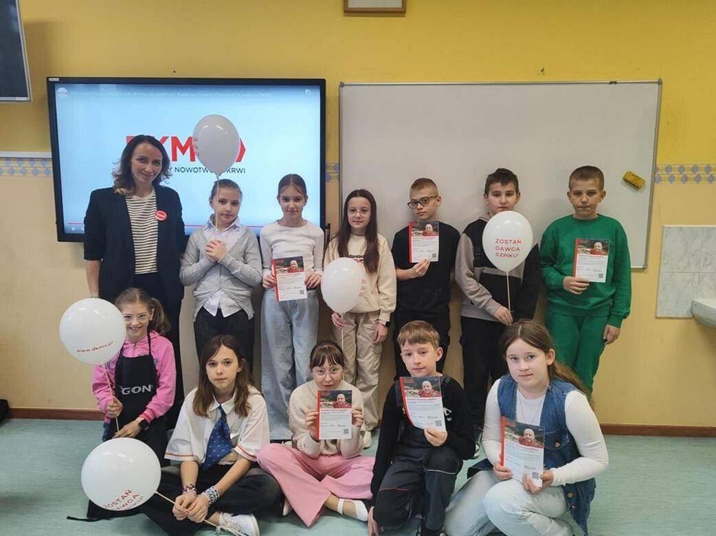W piątek 11.04.2025r. w naszej szkole odbył się Dzień Szpiku Kostnego, którego celem było szerzenie świadomości na temat idei dawstwa szpiku kostnego. To był wyjątkowy dzień, w którym rozmawialiśmy o pomaganiu chorym ludziom. Uczniowie poznali historię Pana Tomka chorującego na białaczkę na rzecz którego zorganizowaliśmy we współpracy z fundacją DKMS akcję rejestracji potencjalnych dawców. Informowaliśmy uczniów, że w naszych kościach jest coś bardzo ważnego – szpik kostny, który może uratować komuś życie!