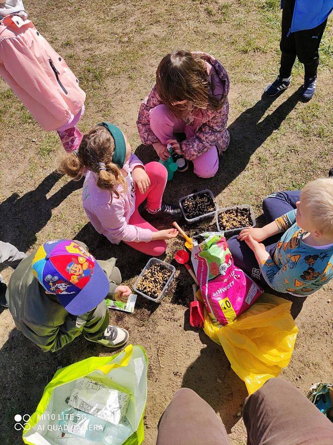 - Dzieci samodzielnie sadziły cebulki szczypiorku i owsa ucząc się troski o rośliny i obserwując ich wzrost.