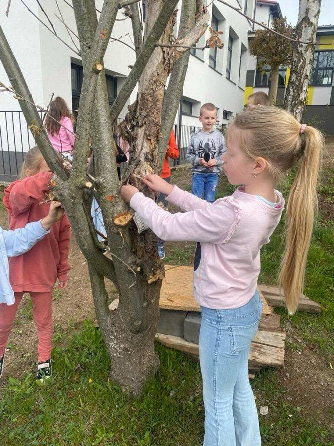 Jednak najwięcej przyjemności dzieci miały z budowania hotelików z materiałów ekologicznych dla murarek i innych owadów zapylających. Następnie domki wykonane przez dzieci zostały przez nich zawieszone na drzewach, by mogły w nich zamieszkać owady. Cennym doświadczeniem dla dzieci okazało się również wysiewanie roślin miododajnych, którą okazała się lawenda. Najważniejszym jednak przesłaniem spotkania było uświadomienie najmłodszym, jak ważne jest istnienie pszczół dla ludzi. Uczniowie wykazali duże zainteresowanie tematem. Spotkanie z pewnością na długo zostanie w ich pamięci.