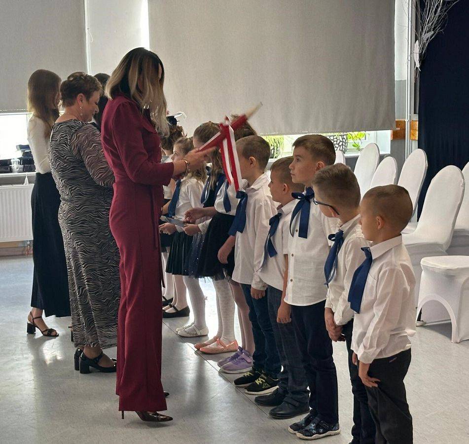 15 uczniów klasy pierwszej pod czujnym okiem wychowawczyni przygotowywało się do tej uroczystości od początku roku szkolnego. Uczyli się dzielnie tekstów, wierszy, piosenek, wytrwale ćwiczyli podczas prób.