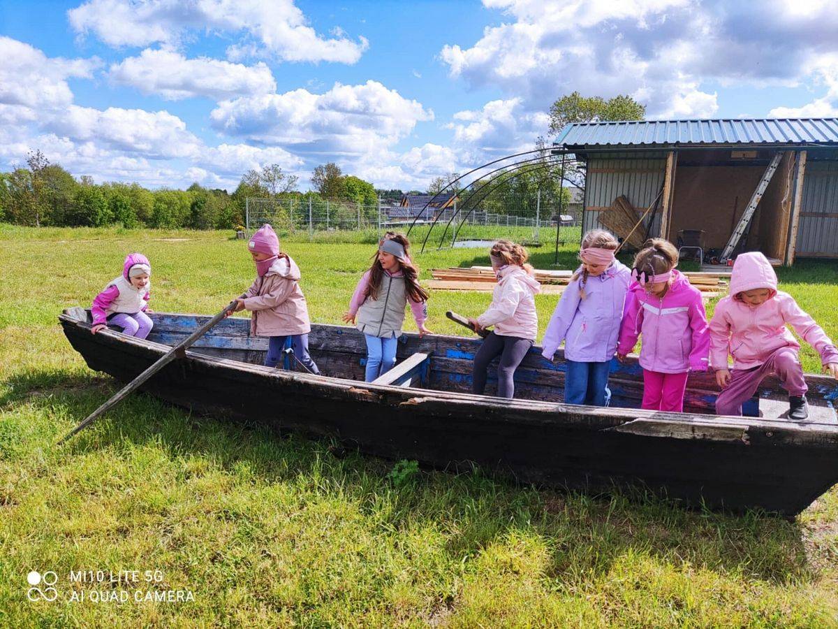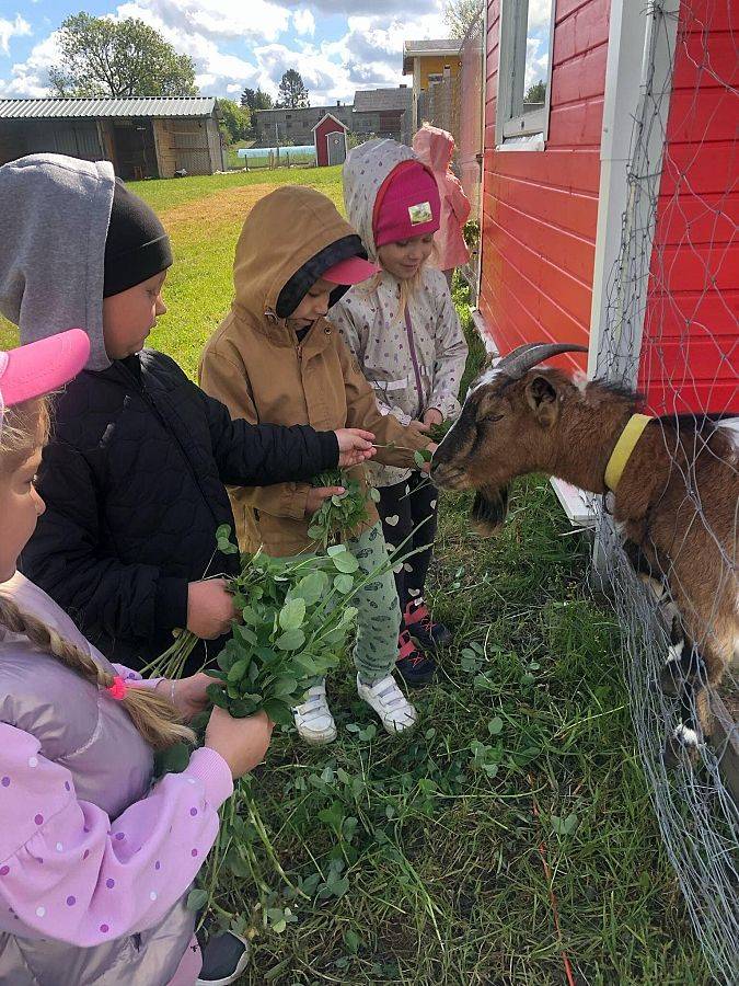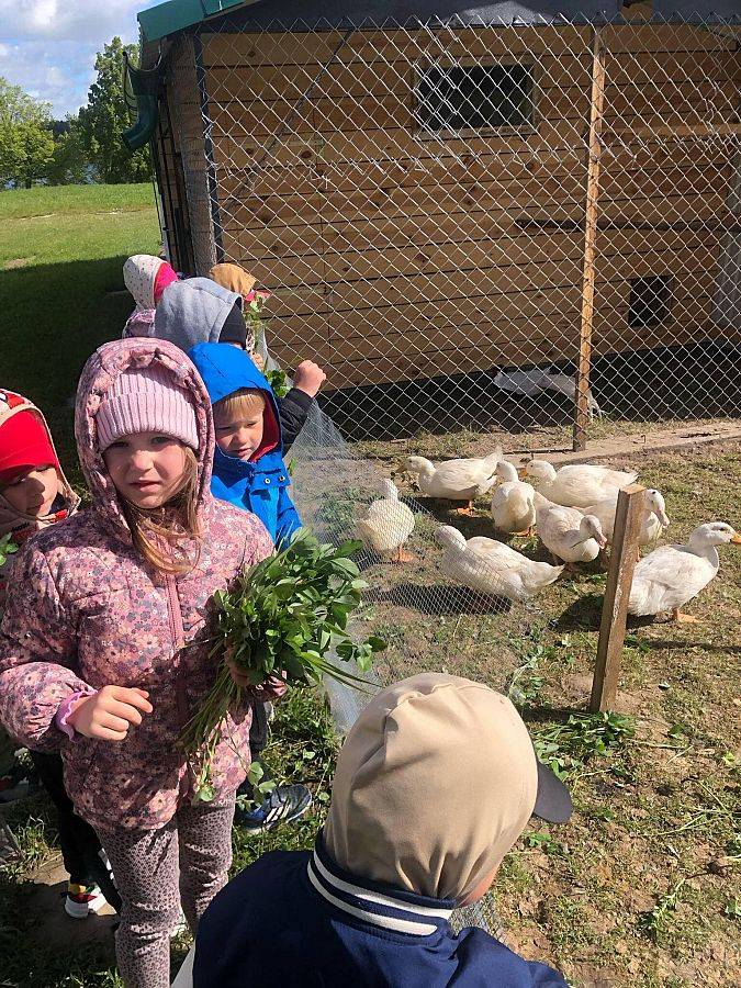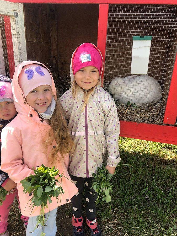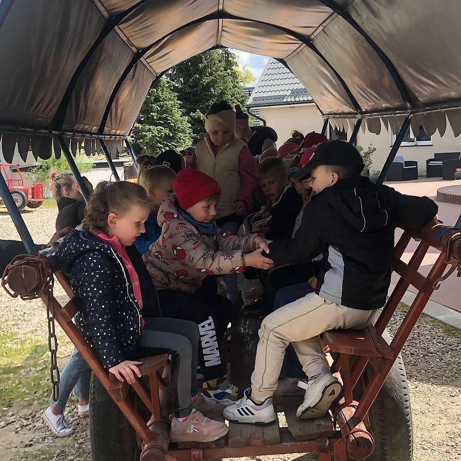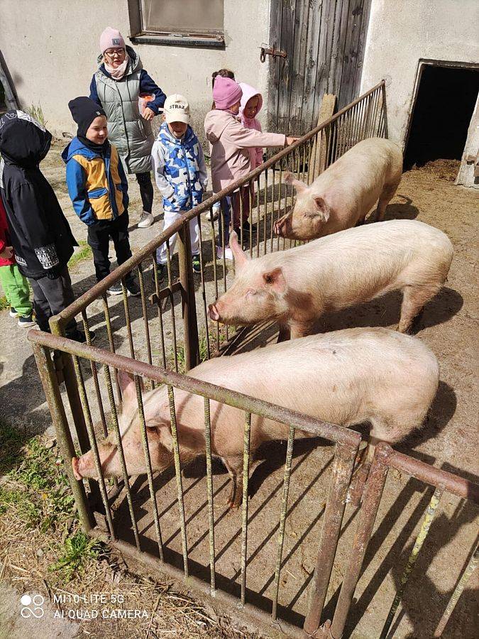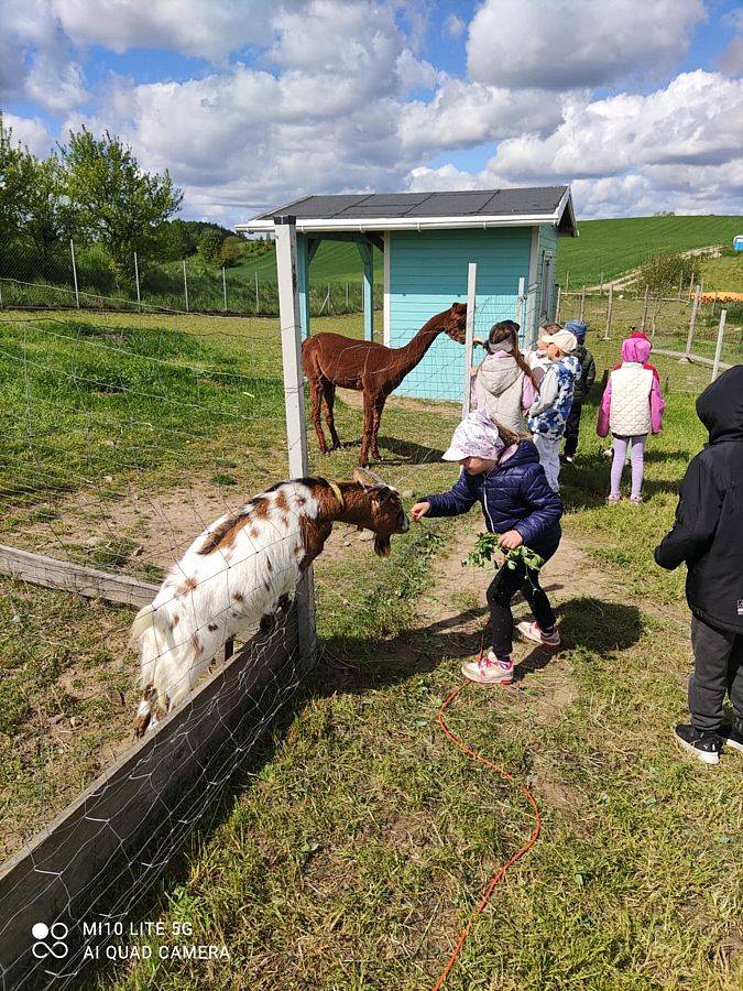 Dzieci miały okazję z bliska zobaczyć wiejskie zwierzęta, takie jak kozy, owce, króliki czy kury. Samodzielnie wypiekały drożdżówki, które później z apetytem zjadły. Nie zabrakło także czasu na swobodną zabawę – plac zabaw, trampolina i przejażdżka wozem drabiniastym dostarczyły mnóstwo radości! Na zakończenie wycieczki dzieci zjadły pyszne kiełbaski pieczone przy ognisku.