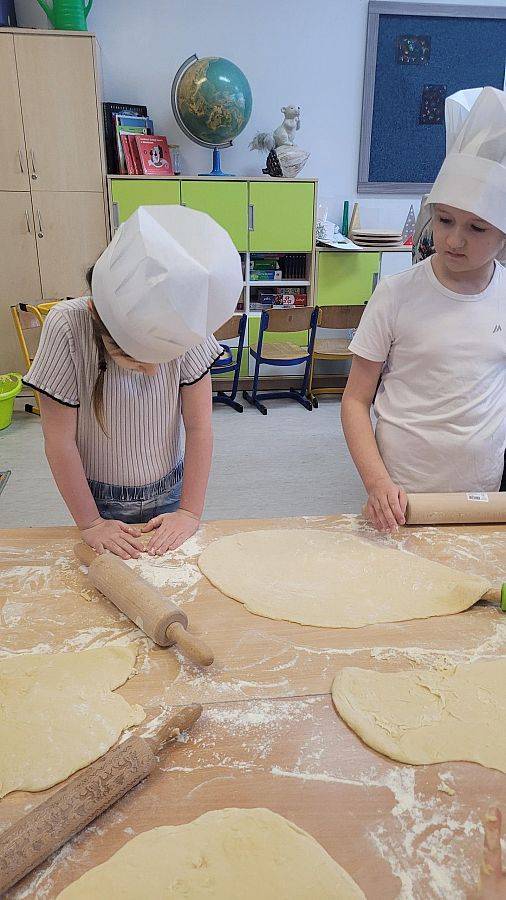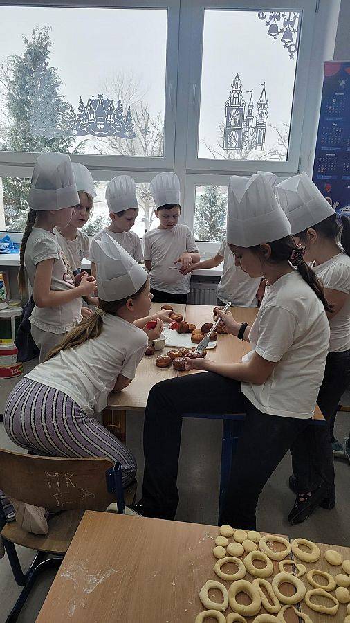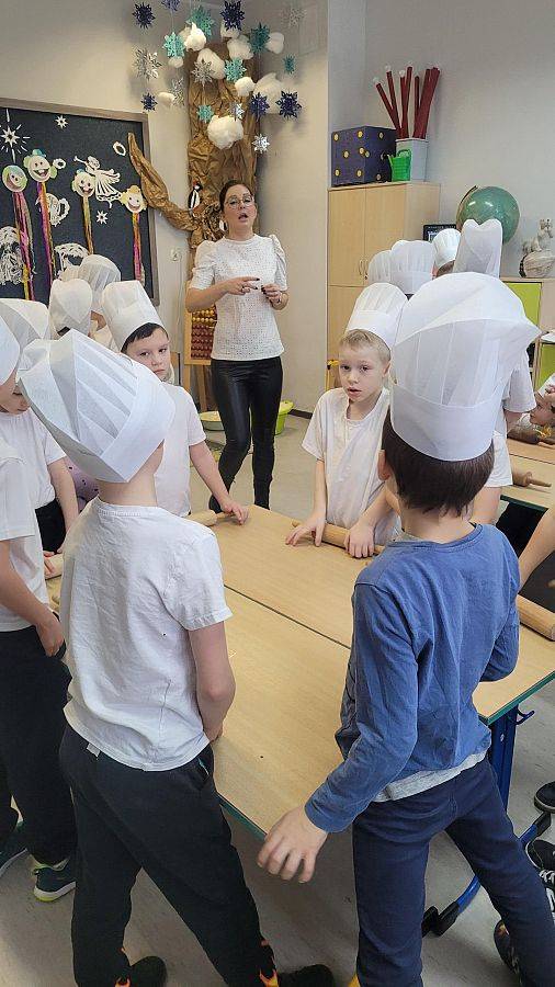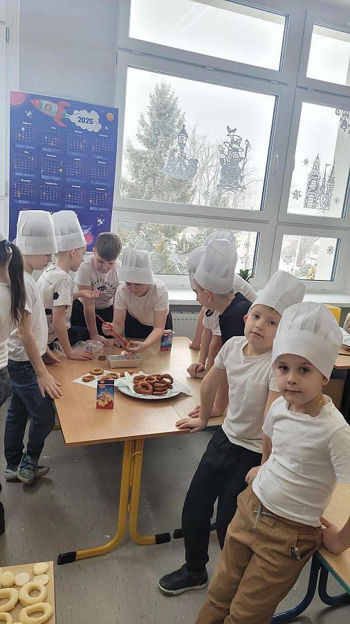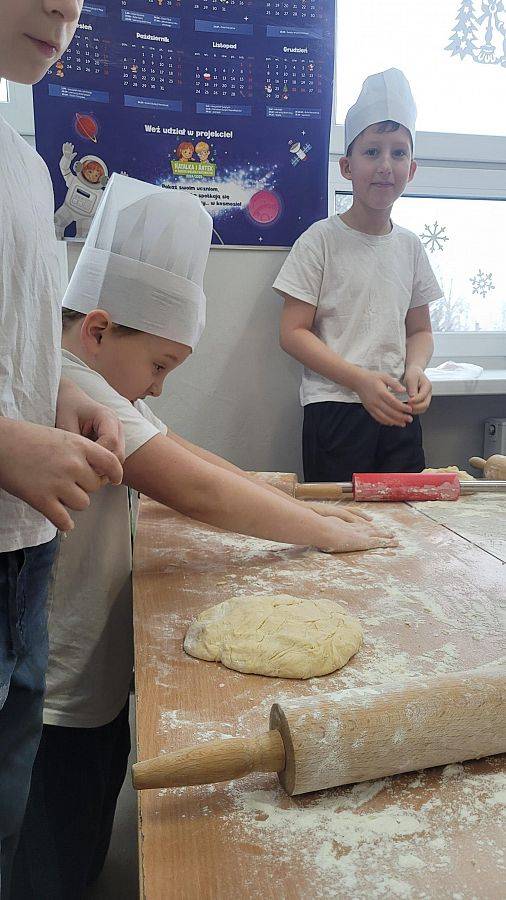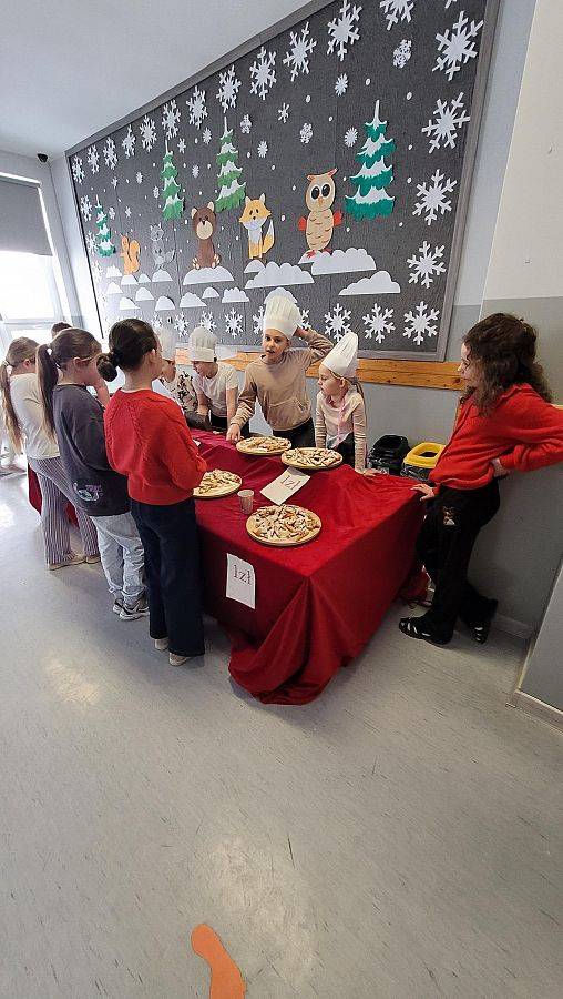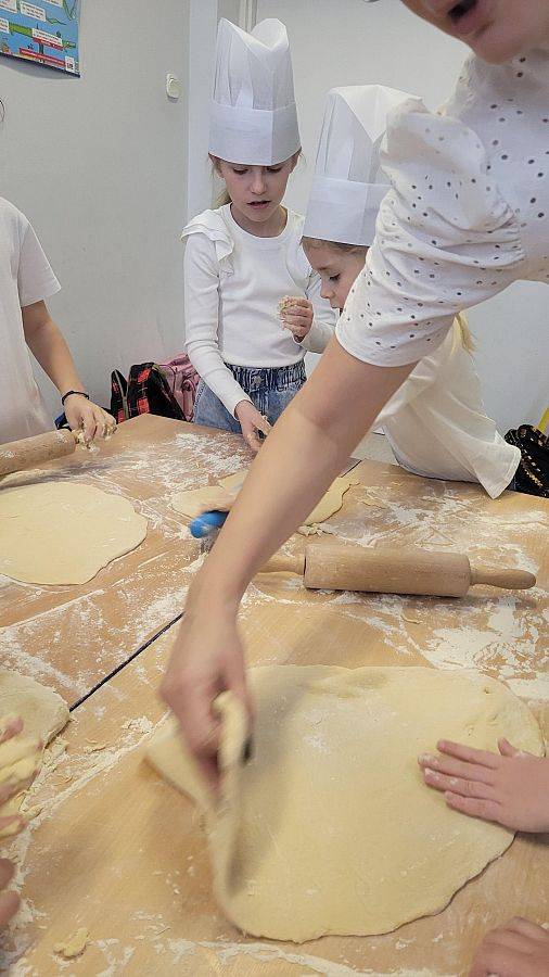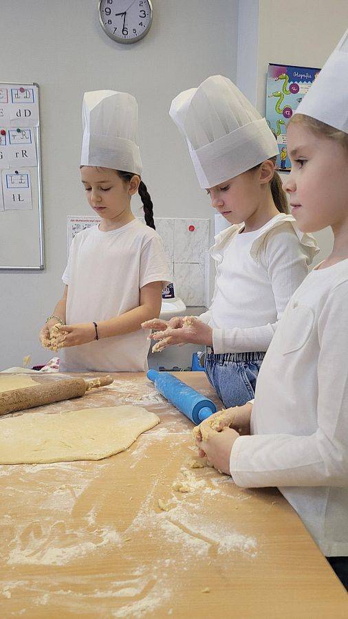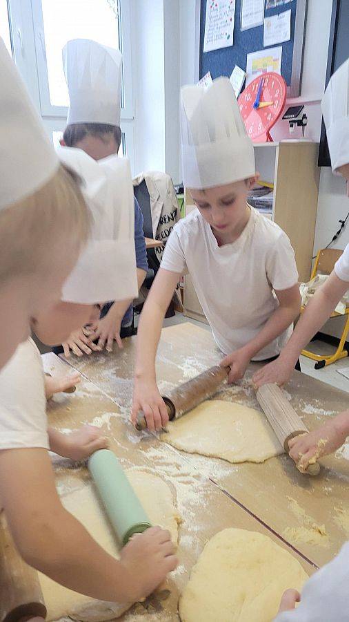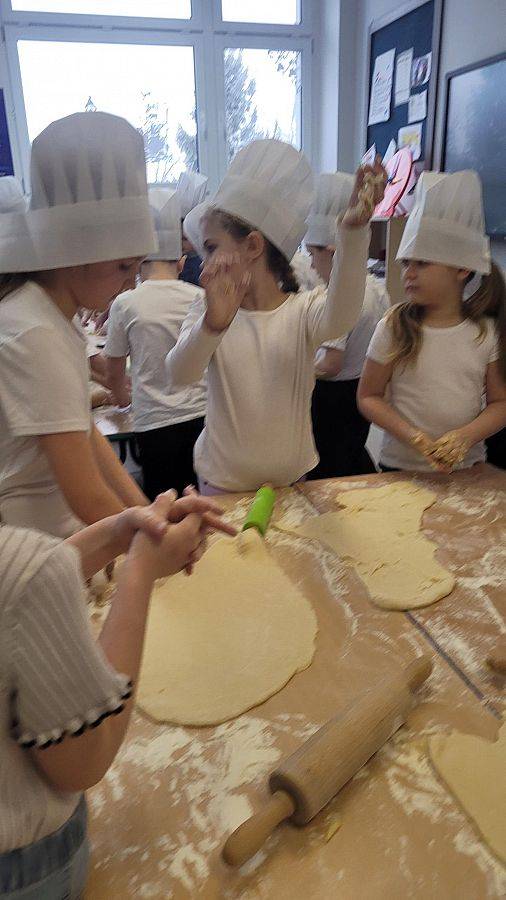 10 lutego w klasach 1–3 od samego rana panowała wyjątkowa atmosfera! Uczniowie z ogromnym zaangażowaniem zakasali rękawy i zabrali się do ciężkiej pracy. Na szkolnym holu unosiły się cudowne zapachy świeżych pączków, pączusiów, donatów i chrupiących faworków.