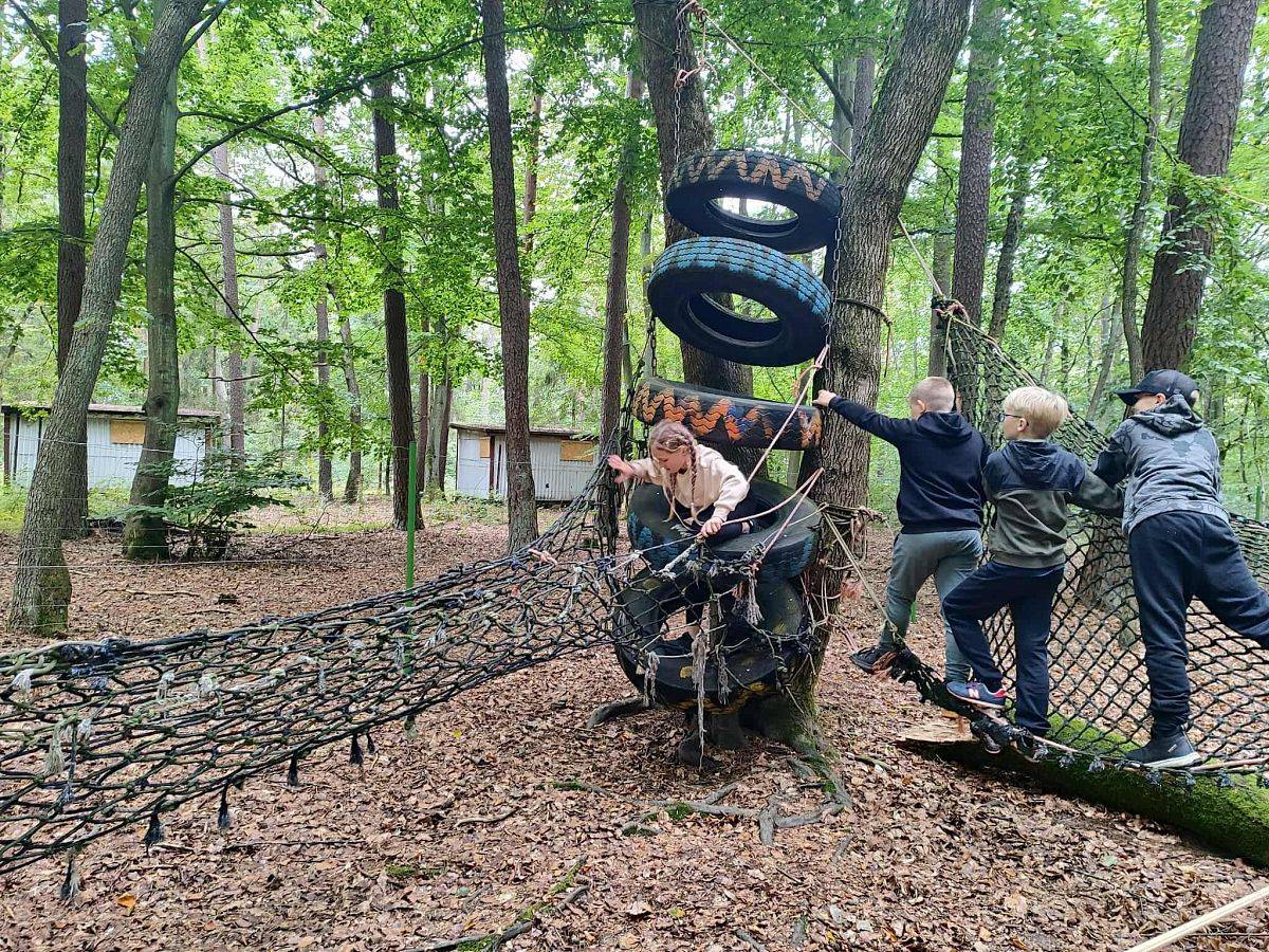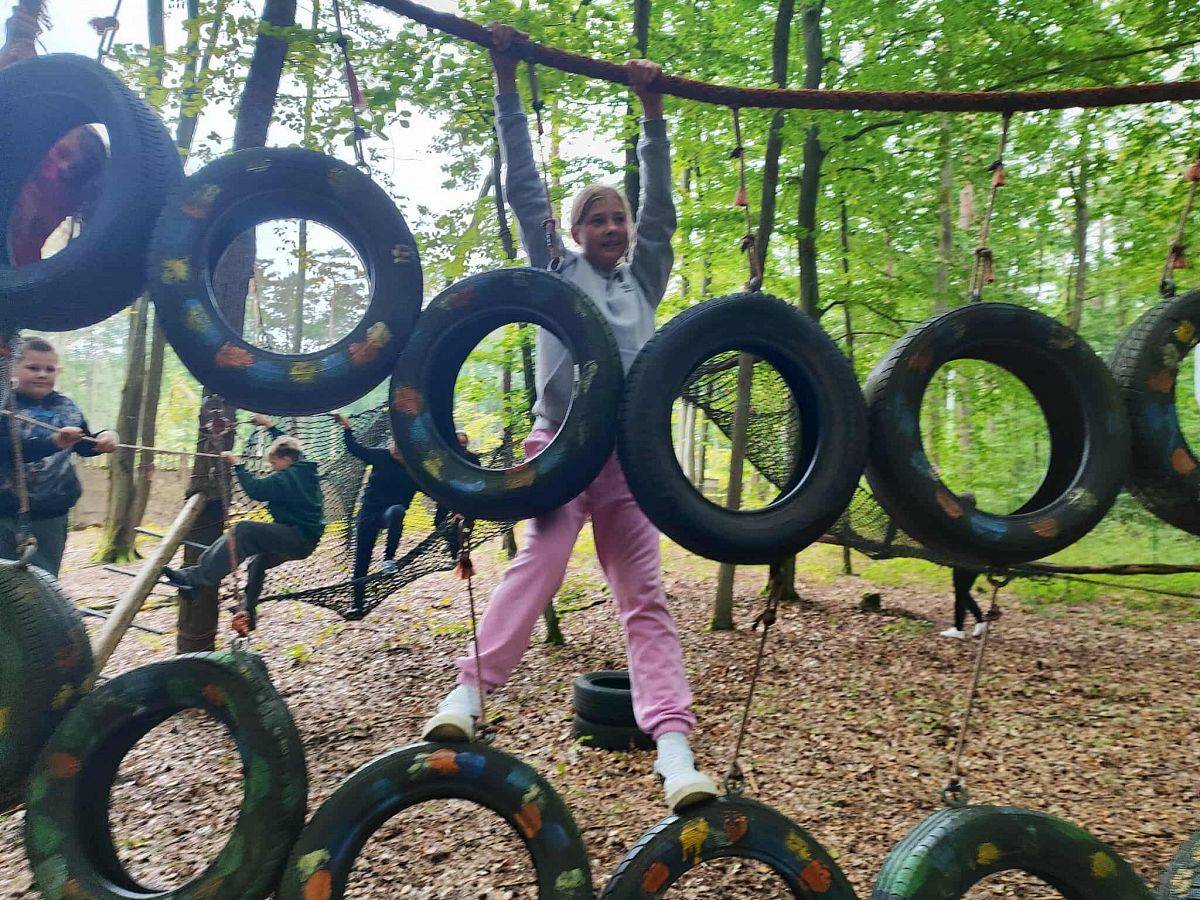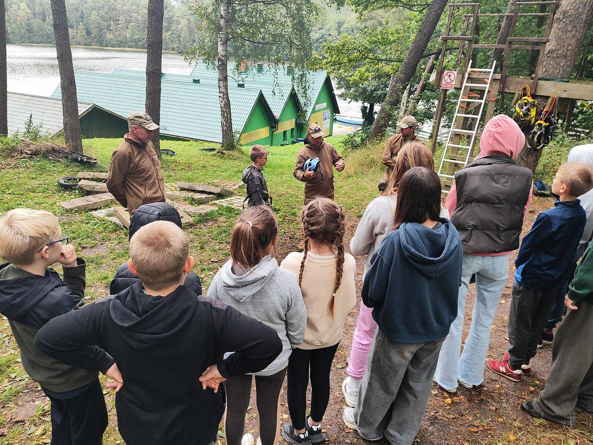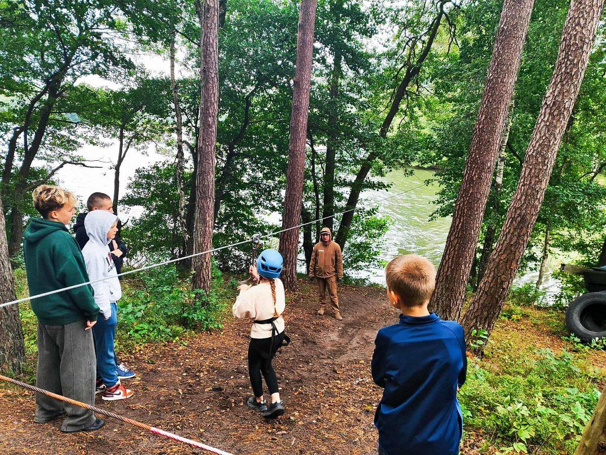W dniach 18–19 września uczniowie klas 4–8 naszej szkoły uczestniczyli w dwudniowym wyjeździe integracyjnym do Garczyna. Była to wyjątkowa okazja do wspólnego spędzenia czasu, lepszego poznania się i aktywnego wypoczynku na świeżym powietrzu. Na uczestników czekało wiele atrakcji. Największe emocje wzbudził zjazd tyrolski nad jeziorem Garczyn, który pozwolił poczuć prawdziwą dawkę adrenaliny. Uczniowie mogli także spróbować swoich sił w strzelaniu z procy, a podczas zajęć sportowych zmierzyć się z ekstremalnym torem przeszkód. Nie zabrakło również czasu na wspólną zabawę – gry i zajęcia integracyjne na świeżym powietrzu sprawiły, że każdy znalazł coś dla siebie. Wieczorem wszyscy spotkali się przy ognisku z kiełbaskami, gdzie w miłej atmosferze podsumowano dzień pełen wrażeń. Wyjazd do Garczyna okazał się świetną okazją do integracji całej społeczności uczniowskiej, rozwijania współpracy i budowania przyjaźni. To był czas pełen radości, sportowych wyzwań i niezapomnianych wspomnień!