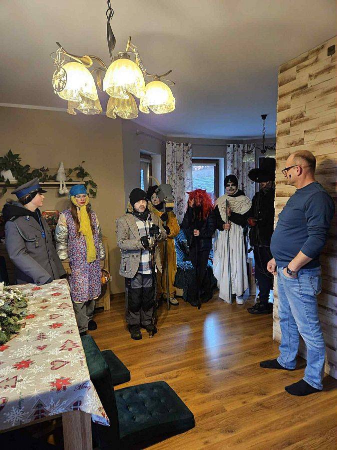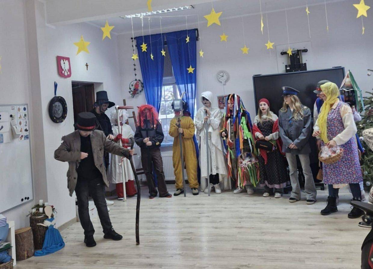 Zgodnie z piękną kaszubską tradycją, uczniowie naszej szkoły, jako grupa Gwiżdży, odwiedzali domy mieszkańców wsi Strzepcz, niosąc radość i świąteczny nastrój. Swoimi występami umilili również uroczystą sesję Rady Gminy w Lini, która odbyła się w Żłobku „Promyczek”. Nie zabrakło także wizyt w Kaszubskim Centrum Rehabilitacyjno-Opiekuńczym w Milorstowie oraz w Ośrodku Rehabilitacyjno-Edukacyjno-Wychowawczym w Strzepczu, gdzie spotkali się z serdecznym przyjęciem.