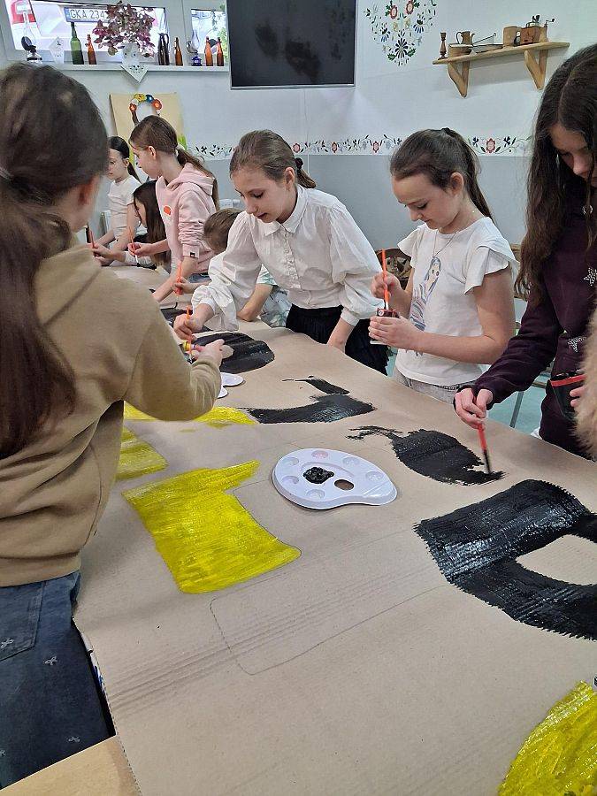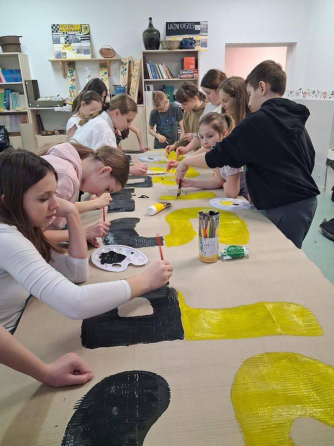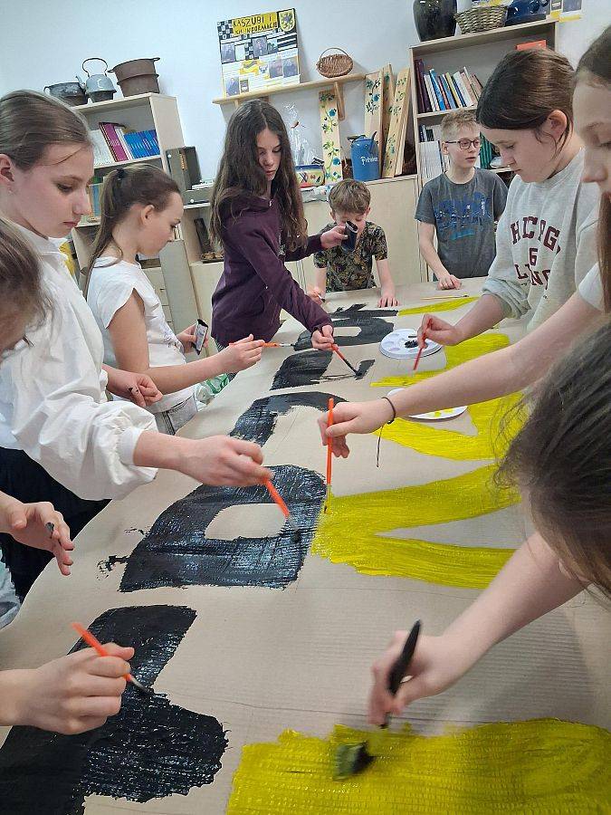 Z tej okazji przygotowaliśmy transparent w kolorach flagi kaszubskiej, na którym nie zabrakło charakterystycznych wzorów haftu kaszubskiego. Nasze prace podkreślają dumę z kaszubskich tradycji i przywiązanie do regionalnej kultury.