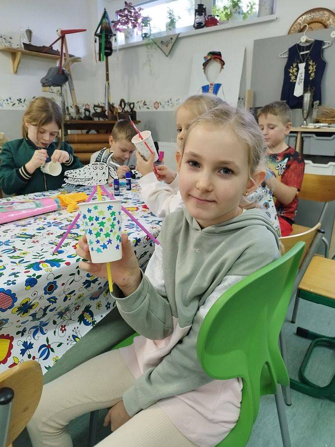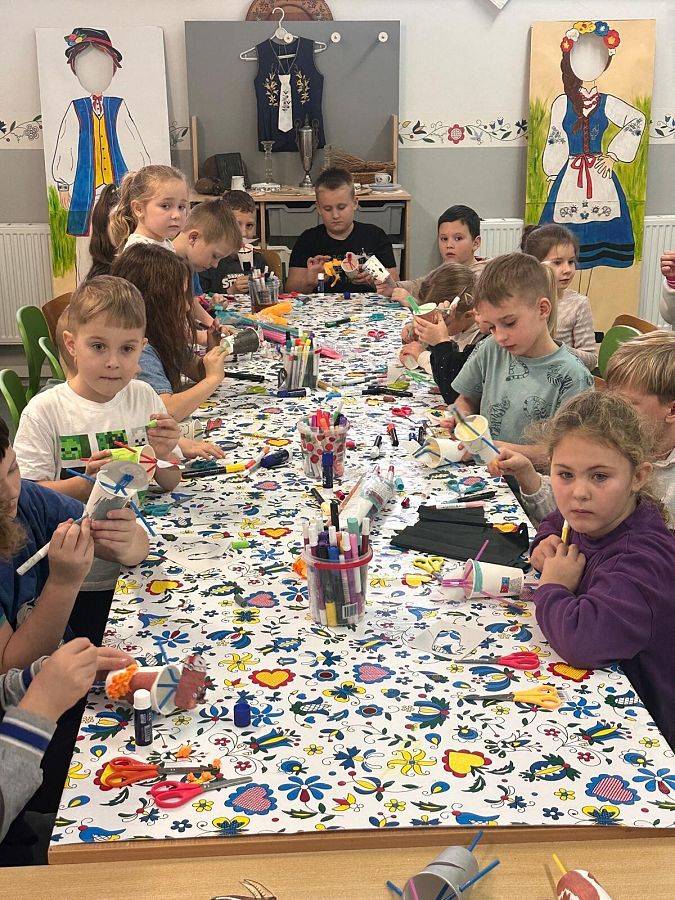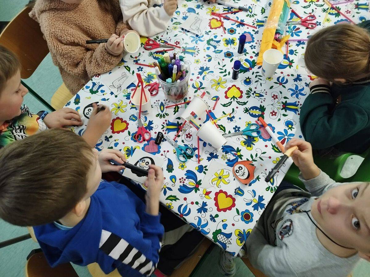 Po części wprowadzającej uczniowie przystąpili do działań praktycznych. Wykorzystując ekologiczne materiały, stworzyli własnoręcznie wykonane kaszubskie maszkary. Powstałe prace były pełne kreatywności i stanowiły doskonałe podsumowanie zdobytej wiedzy o kaszubskich tradycjach.