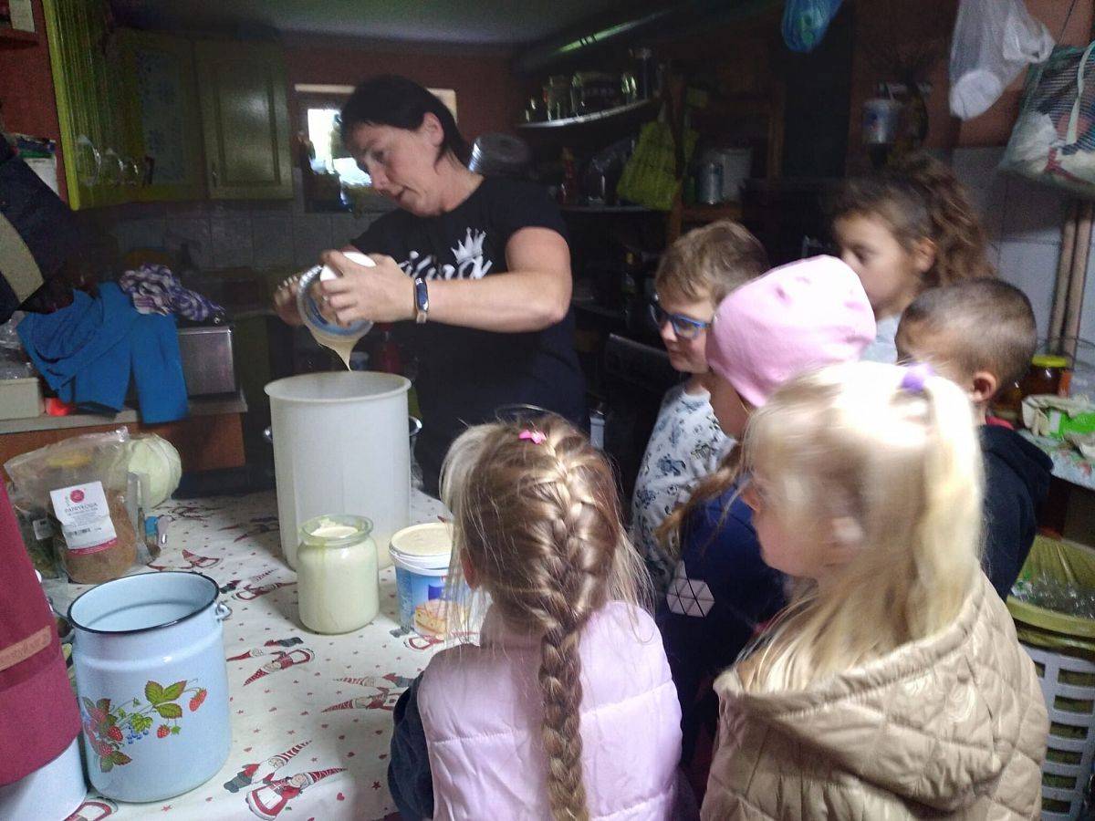W ramach zajęć z języka kaszubskiego uczniowie klasy II wybrali się na wycieczkę do gospodarstwa Państwa Kielińskich. Podczas wizyty dzieci miały okazję nie tylko poznać tajniki powstawania mleka i śmietany, ale również wziąć udział w warsztatach, podczas których samodzielnie wyrabiały masło!