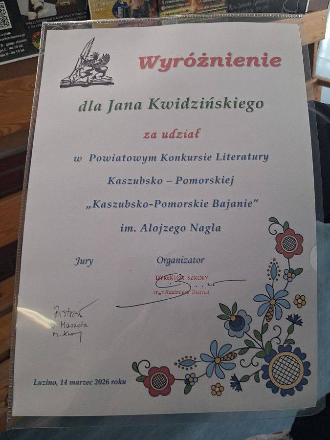 Sukces naszych uczniów w powiatowym konkursie literatury kaszubsko-pomorskiej