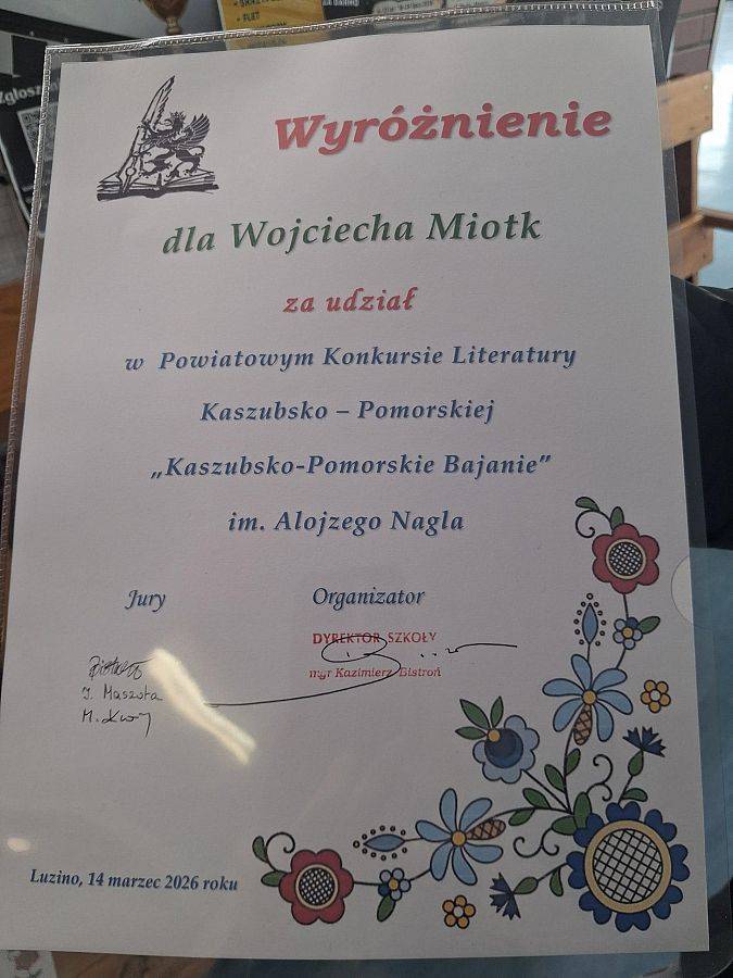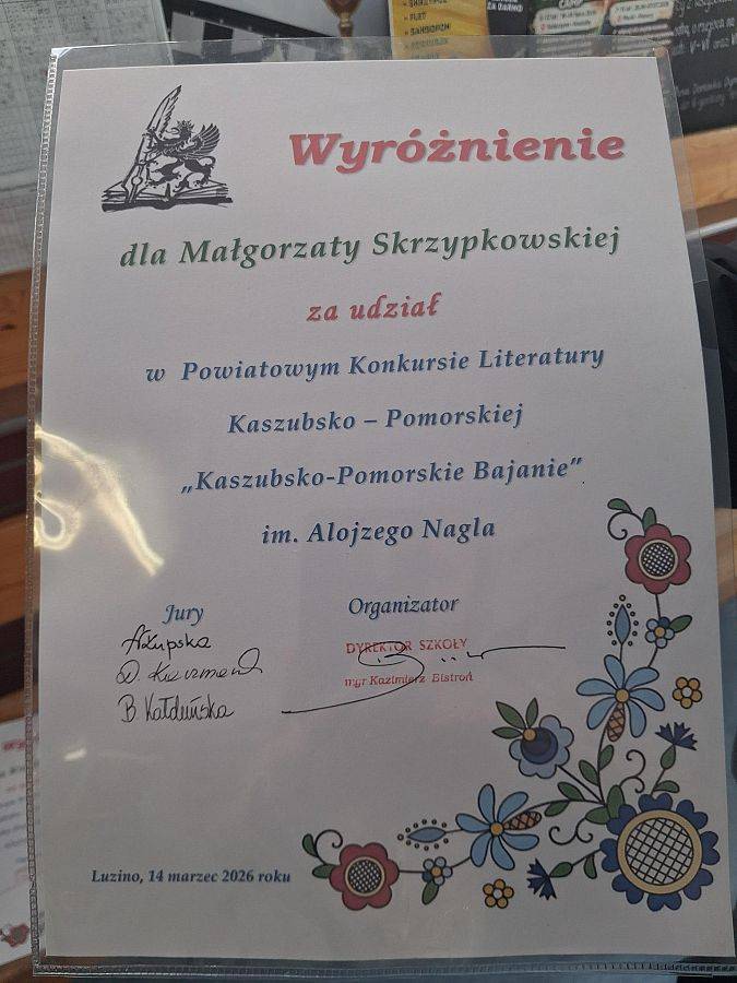 Serdecznie gratulujemy uczniom oraz dziękujemy za piękne reprezentowanie naszej szkoły i pielęgnowanie kaszubsko-pomorskiego dziedzictwa kulturowego.