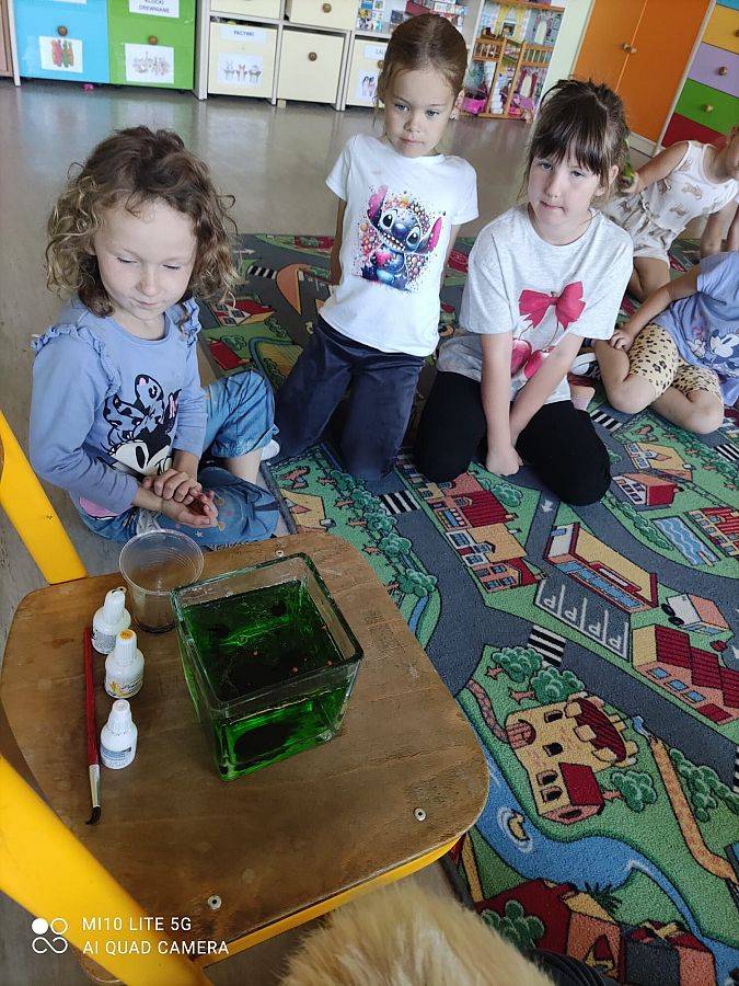 Eksperymentowaliśmy też jak mali naukowcy – dzieci z ogromnym zainteresowaniem brały udział w prostych, ale efektownych eksperymentach, które wzbudziły wiele emocji i zachęciły do zadawania pytań!