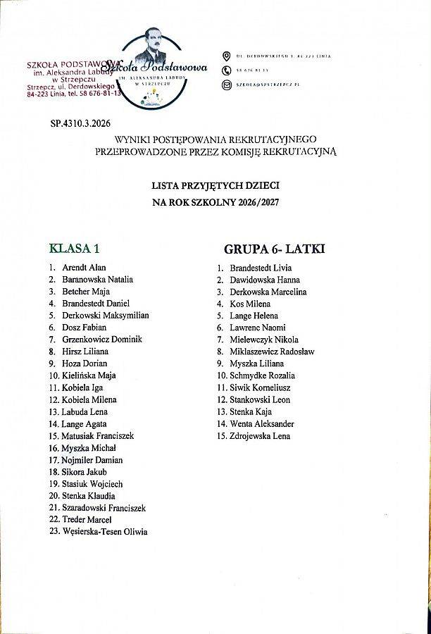 2 marca 2026r. zgodnie z zarządzeniem Wójta Gminy Linia rozpoczyna się rekrutacja do oddziałów przedszkolnych (4, 5 i 6-latki) i klas pierwszych na rok szkolny 2026/2027.