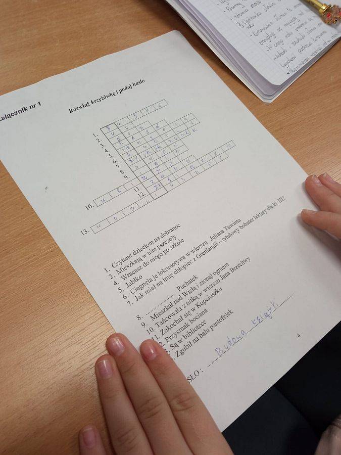 Dnia 14.11.2025 r. odbyły się w naszej szkole zajęcia biblioteczne pt. ”Dlaczego warto czytać książki?". Podczas zajęć uczniowie klasy 6 mieli okazję dowiedzieć się, jak ważne jest czytanie różnych książek. Na początku obejrzeli prezentację, która pokazała liczne zalety czytania – od rozwijania wyobraźni i poszerzania słownictwa, po zdobywanie wiedzy i relaks. Następnie uczniowie mieli okazję sprawdzić swoją wiedzę, rozwiązując krzyżówkę związaną z tematem książki. Na koniec w grupach formułowali najważniejsze zalety książek, co pozwoliło im lepiej zrozumieć, dlaczego warto sięgać po lekturę jak najczęściej.