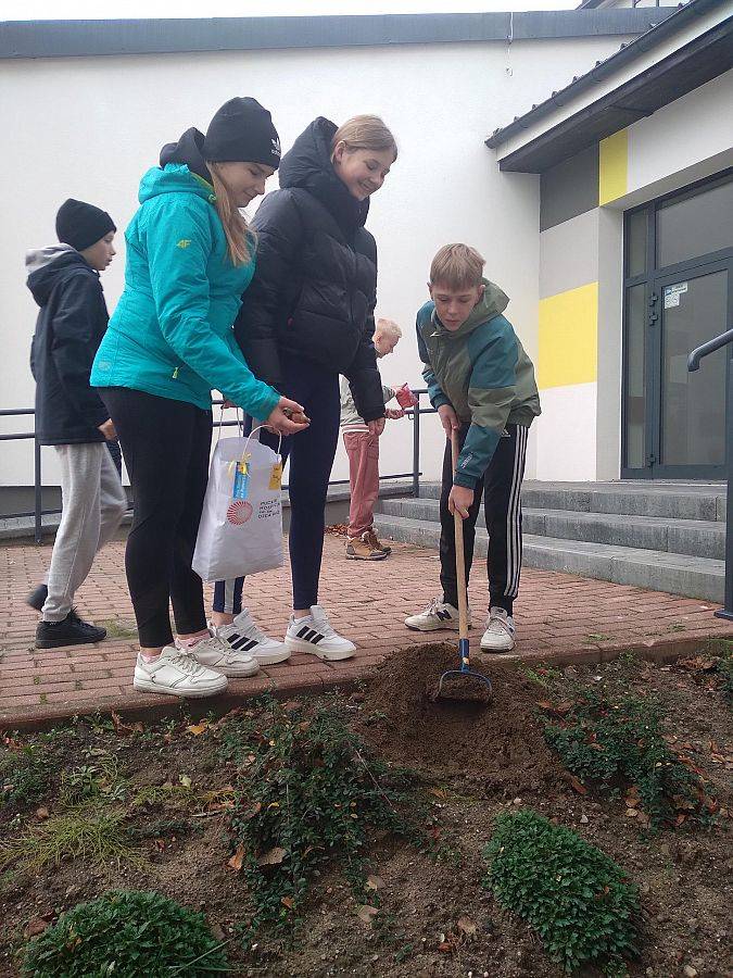 Uczniowie naszej szkoły wzięli udział w akcji „Pola Nadziei”, realizowanej we współpracy z Puckim Hospicjum pw. św. Ojca Pio. W ramach szkolnego wolontariatu otrzymaliśmy cebulki żonkili, które wspólnie posadziliśmy przy naszej szkole.