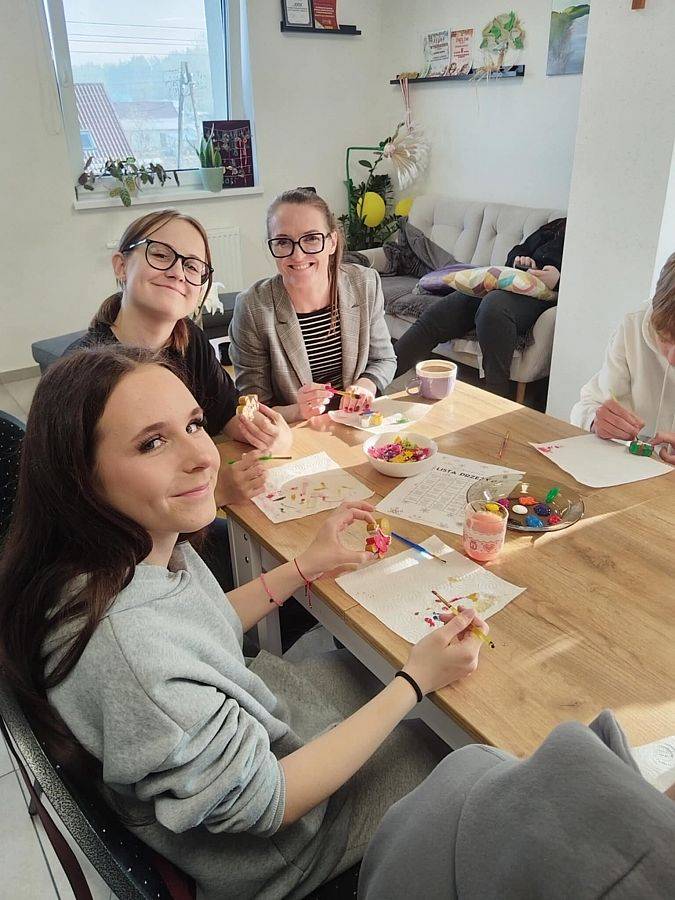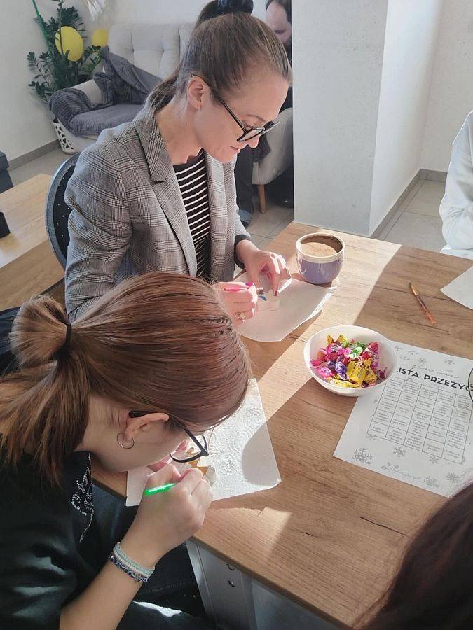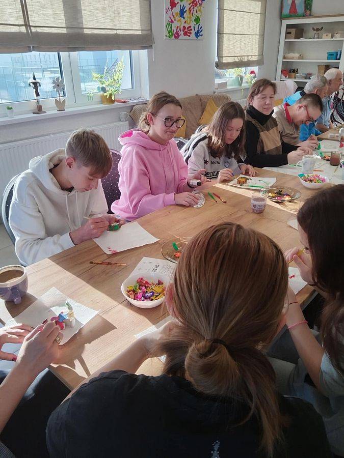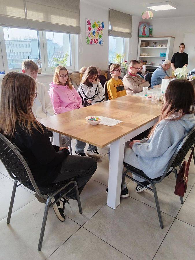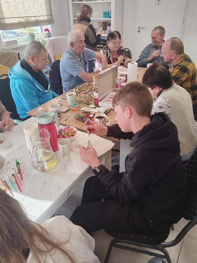 Podczas wizyty młodzież przygotowała dla seniorów świąteczne warsztaty plastyczne. Wspólnie wykonywano gipsowe figurki, które następnie ozdabiano według własnych pomysłów. Spotkanie przebiegło w radosnej, pełnej serdeczności atmosferze, a wspólna praca stała się okazją do rozmów, wymiany doświadczeń i budowania międzypokoleniowych relacji.